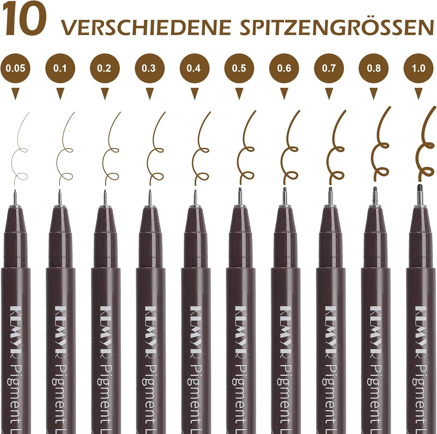 10 Micro Fine liner Drawing Art Pens Calligraphy Pens: 0.05mm-1.0mm Size Art supplies Waterproof Archival brown Ink Markers For Artists,Use for Professional Watercolor,Sketching