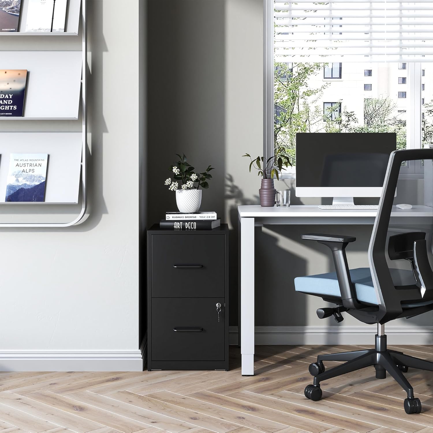 2 Drawer File Cabinet with Lock, Steel Vertical Filing Cabinets for Home Office, Small Metal Storage Cabinet for Hanging Letter Size Files Folders, Assembly Required(Black)