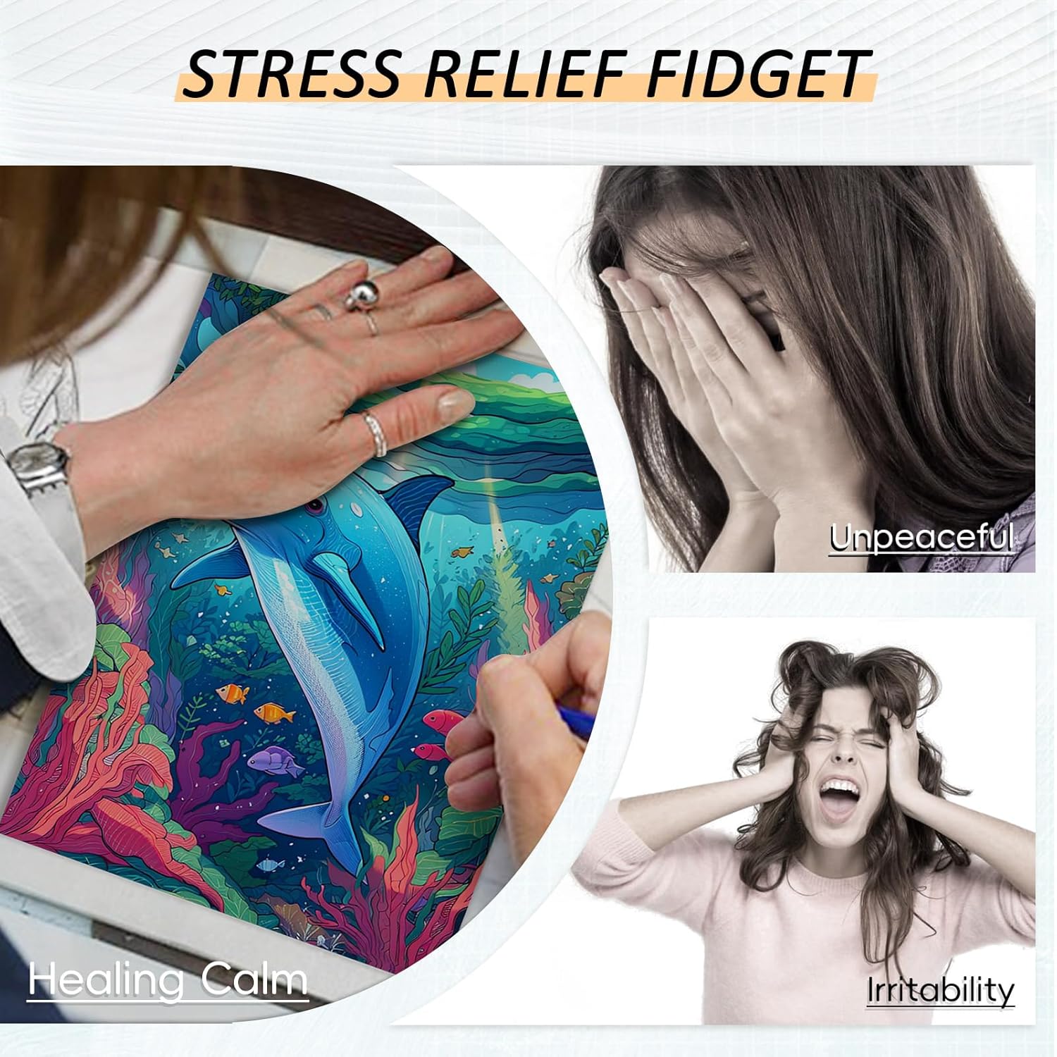 3Pcs Adult Coloring Book for Women Relaxation, 36 Colors Markers with Spiral Bound Adult Coloring Book for Women, 36 Dual Tip Colors Markers, Anxiety Relief Mindfulness Gifts(Ocean & Bird & Butterfly)