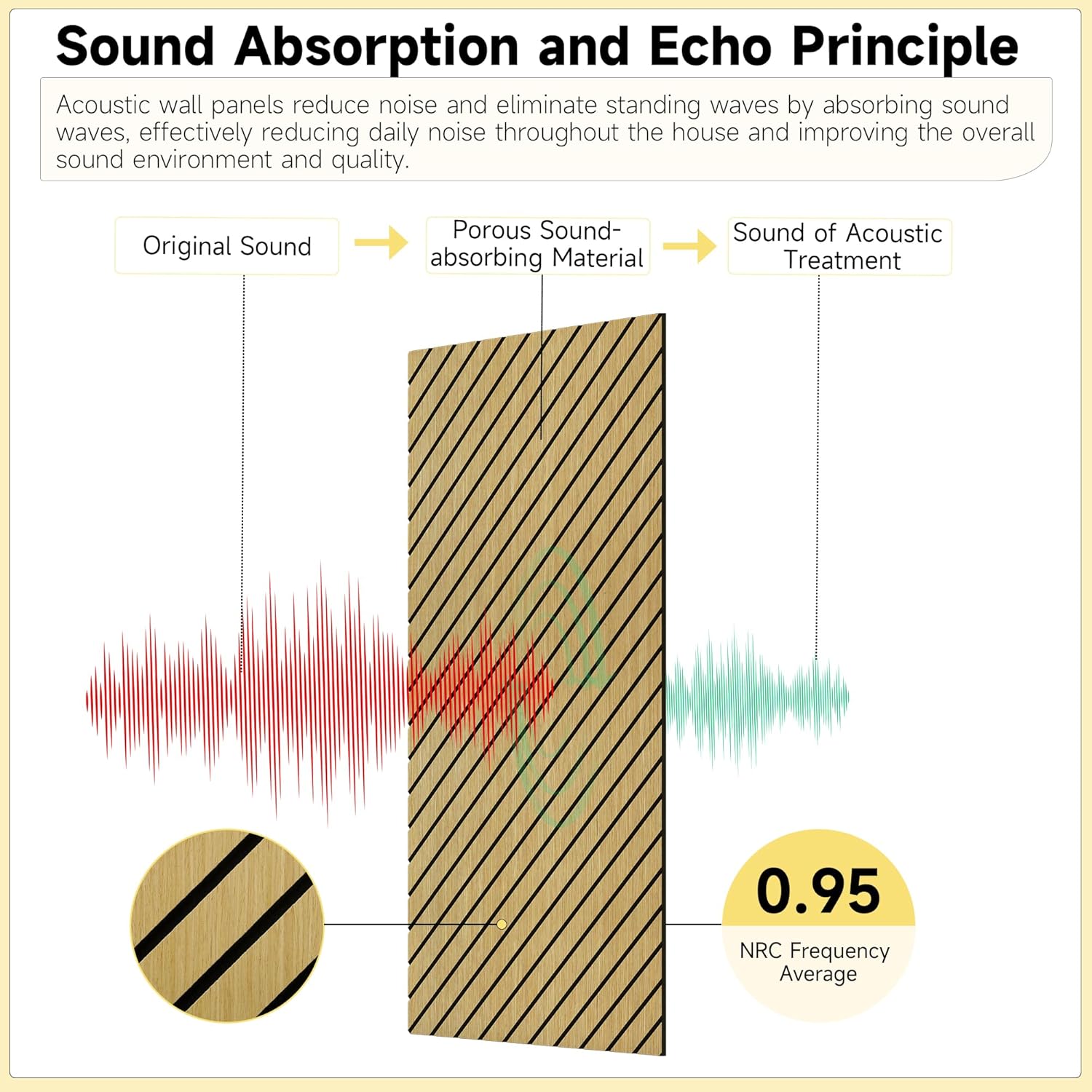 - HIGH-DENSITY ACOUSTIC PANELS: Crafted from 100% eco-friendly polyester fibers with natural wood surface. Engineered for durability, they are flame-retardant, odorless, and family-safe. The dense, uniformly stiff polyester fibers feature heat-treated surfaces to ensure lasting structural integrity and optimal sound absorption performance.