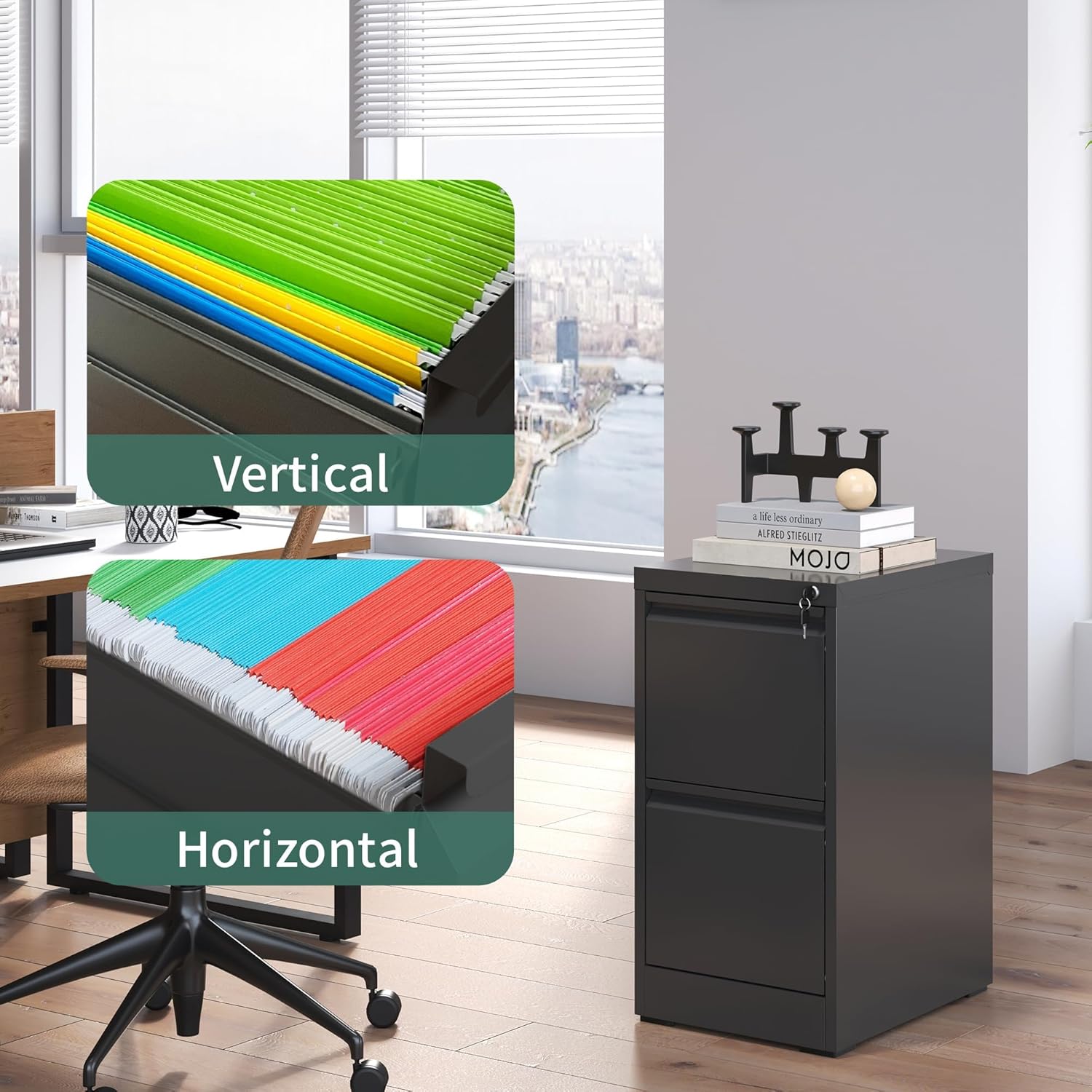- 【2 Drawer Full-Extension File Cabinet】The slender rectangular silhouette with a clean black finish, this file cabinet is not only a practical storage solution but also adds a stylish touch to any home or office setting. Suitable for office, study room, bedroom, living room, etc.