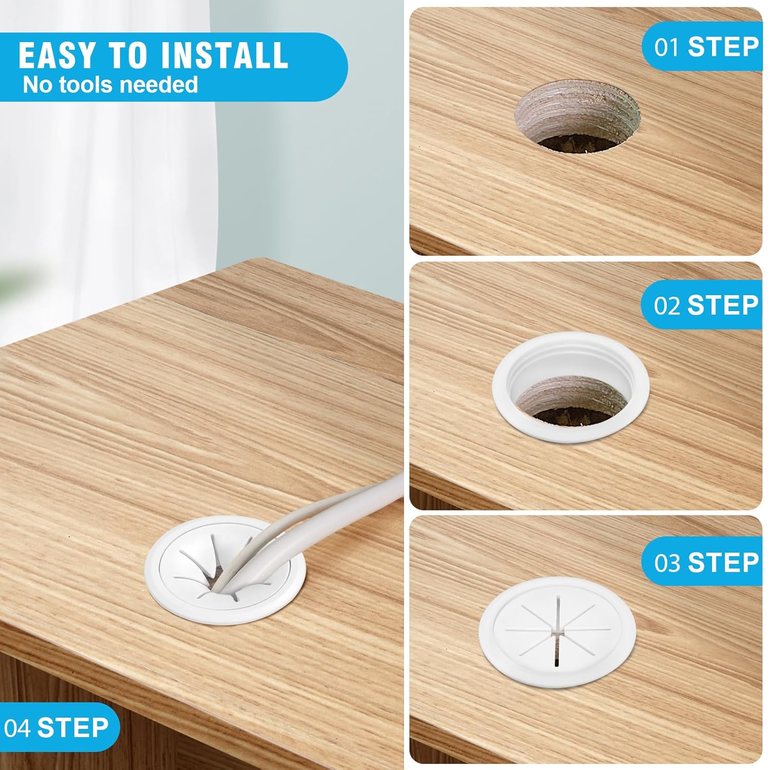 - DELIGHTS PACKAGE -- Your package includes 10 x 2" desk grommets. Useful Tips: ① Make sure the hole's edges are smooth and free of splinters that could damage your cables or the grommet, ② Place the grommet into the hole. It should fit snugly, ③Finally, route your cables through the desk grommet.