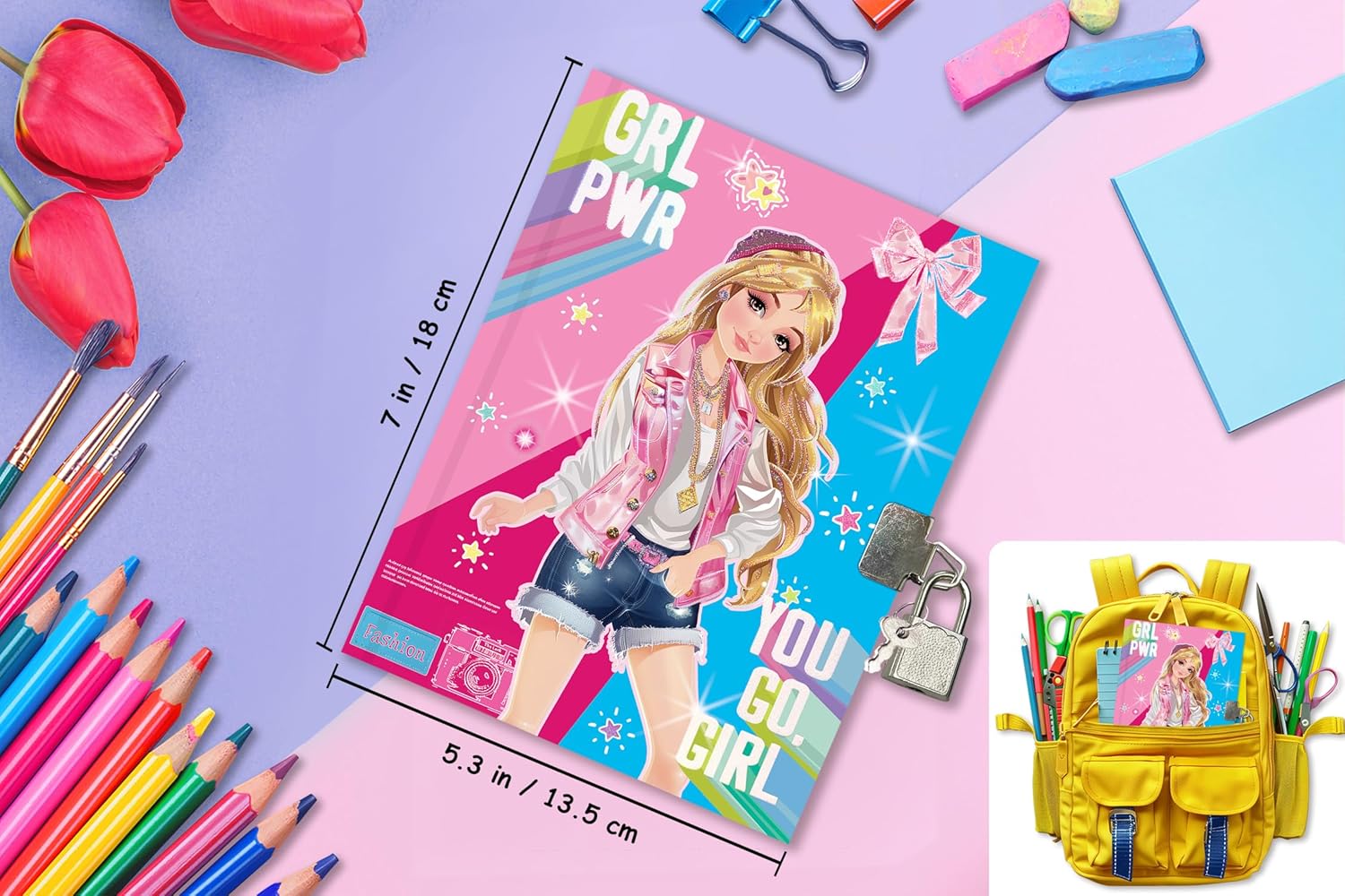 - 【Diary for Girls】- 7 x 5.25 inches girls diary with lock with sturdy hardcover. The cute girly diary is lightweight and easy to carry in kids backpack for writing or drawing