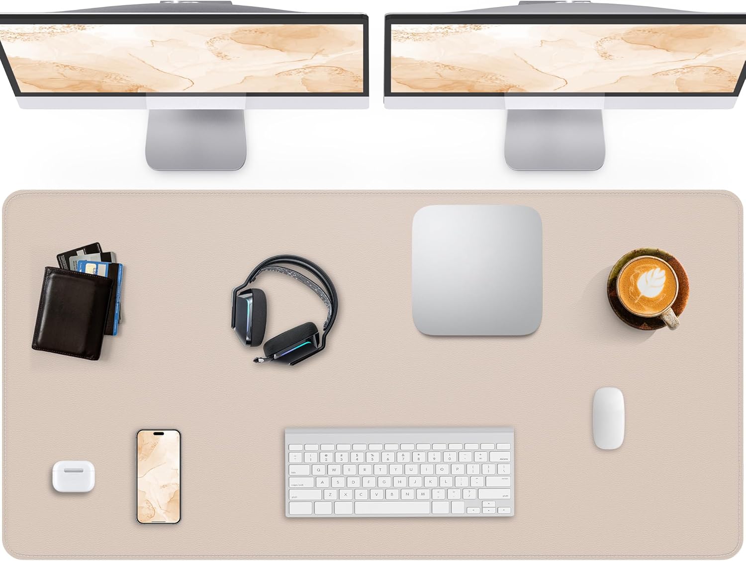 Extra Large Desk Pad Mat - Waterproof Mouse Pad & Desk Protector, Non-Slip XXL PU Leather Gaming Mat for Keyboard/Mouse, Stitched Edge with Ergonomic Support, 55"x17" (Beige)