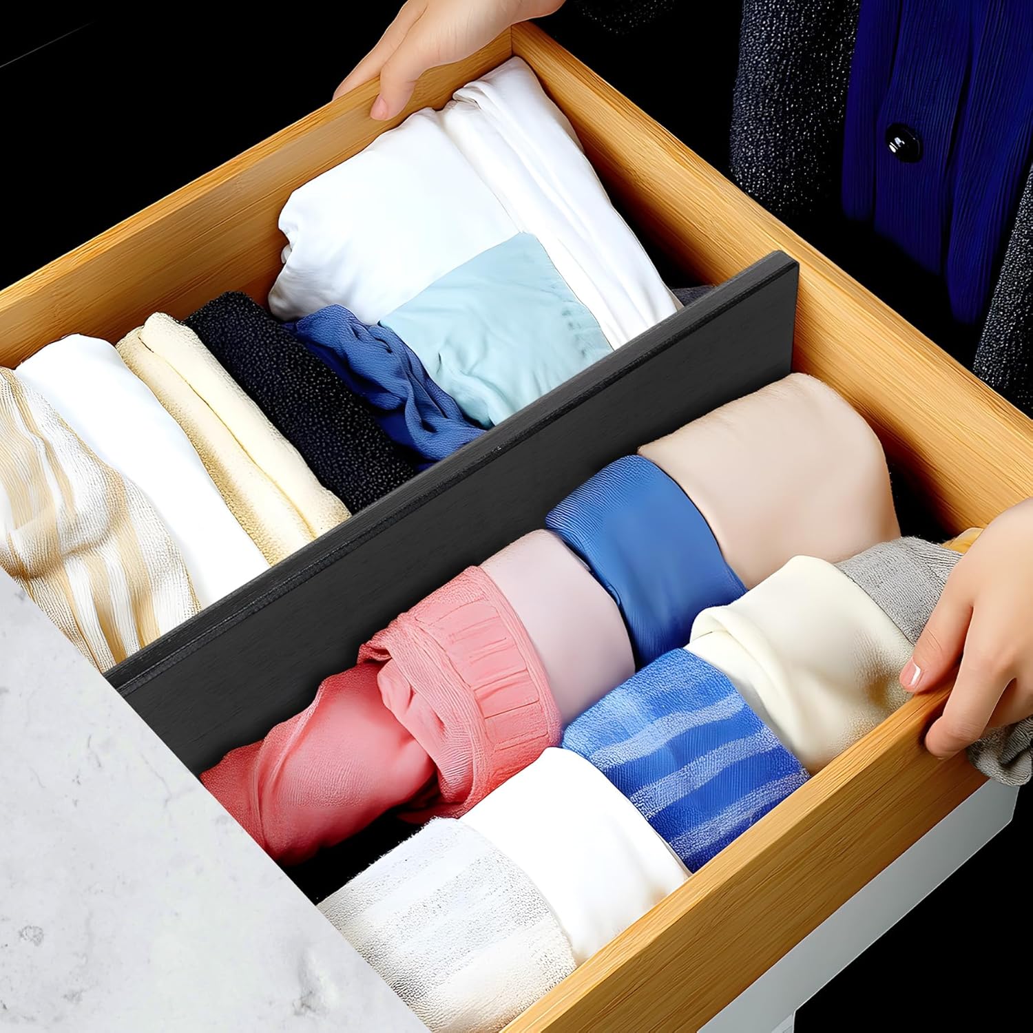 Utoplike Bamboo Drawer Dividers Large, 4'' High Adjustable Kitchen Drawers Organizers for Clothing, Spring Loaded, Works in Bathroom, Dresser, Desk, 4 PCS, Black