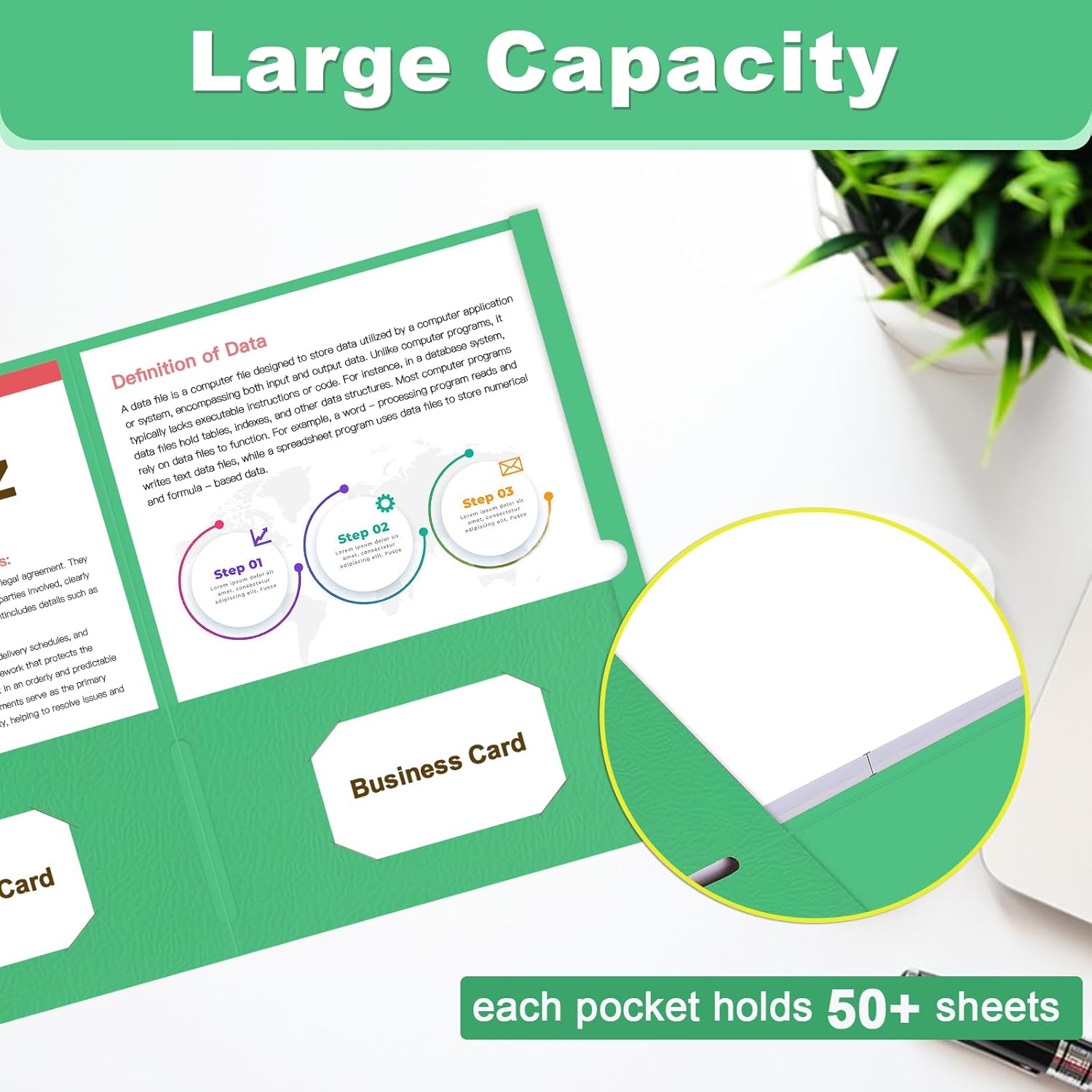 - Large Capacity: 30 pack pocket folder has two deep pockets that hold over 50 sheets of paper each. 2 business card slots for instant access to important contacts without the need for a separate business card holder.