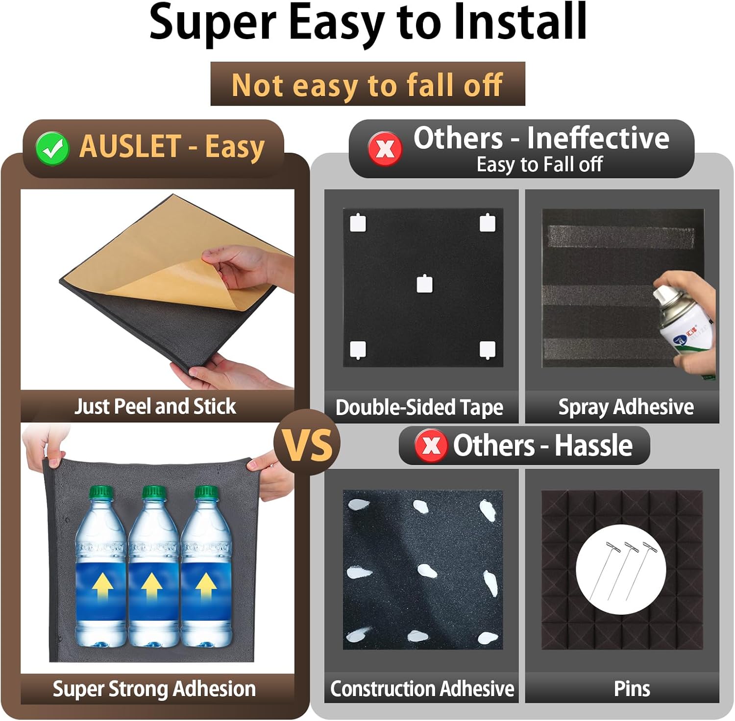 - 🛠️ Peel, Stick & Done: Each acoustic panel features a pre-applied adhesive backing—no glue, nails, or tools required. Simply peel off the liner and stick the panel to any clean, flat surface like walls, ceilings, or doors.