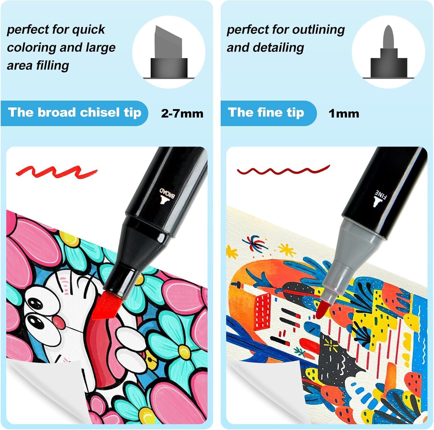120 Colors Alcohol Markers, Dual Tip Permanent Art Markers with Black Suitcase, For Adults Coloring, Sketching, Card Making and DIY Patinting