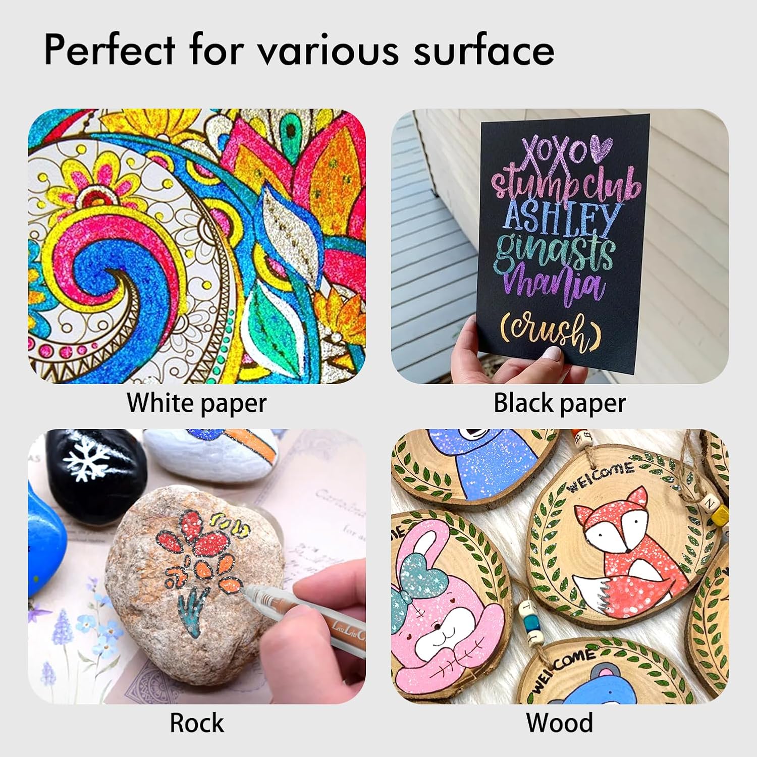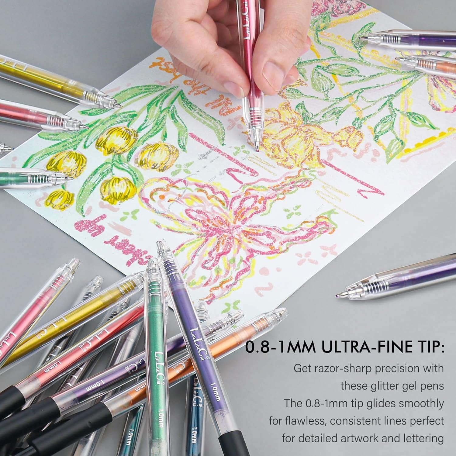 - 【Smooth Writing】:Superior glitter ink and soft rubber grip make the pens writing smoothly and using durable! The free-flowing ink ensures smooth writing, preventing skips, smudges, or bleed-through, so you can enjoy a seamless writing experience