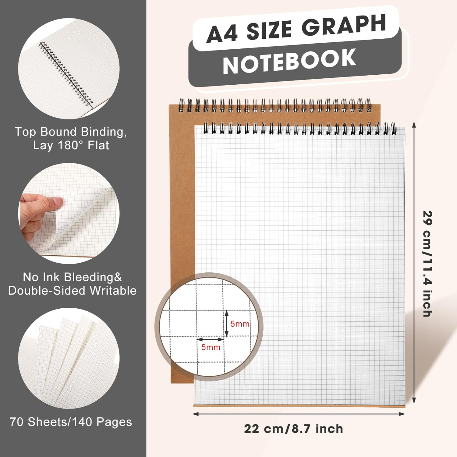 - What You Will Get: you will receive 2 pack graph paper spiral notebooks, each size is about 8.7 x 11.4 inches/ 22 x 29 cm, 140 pages/ 70 sheets per notebook; These notebooks slip easily into a backpack and are easy to carry along; They are suitable for office, business, school, and are ideal gifts for friend, family, or business colleagues