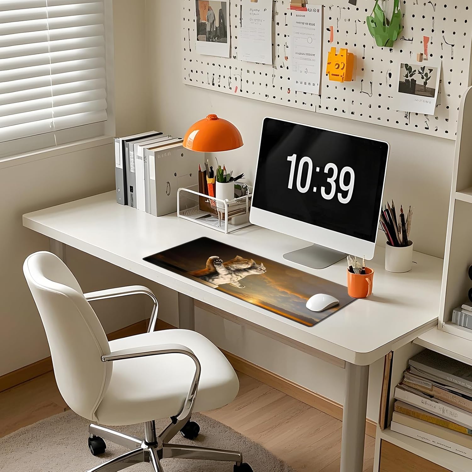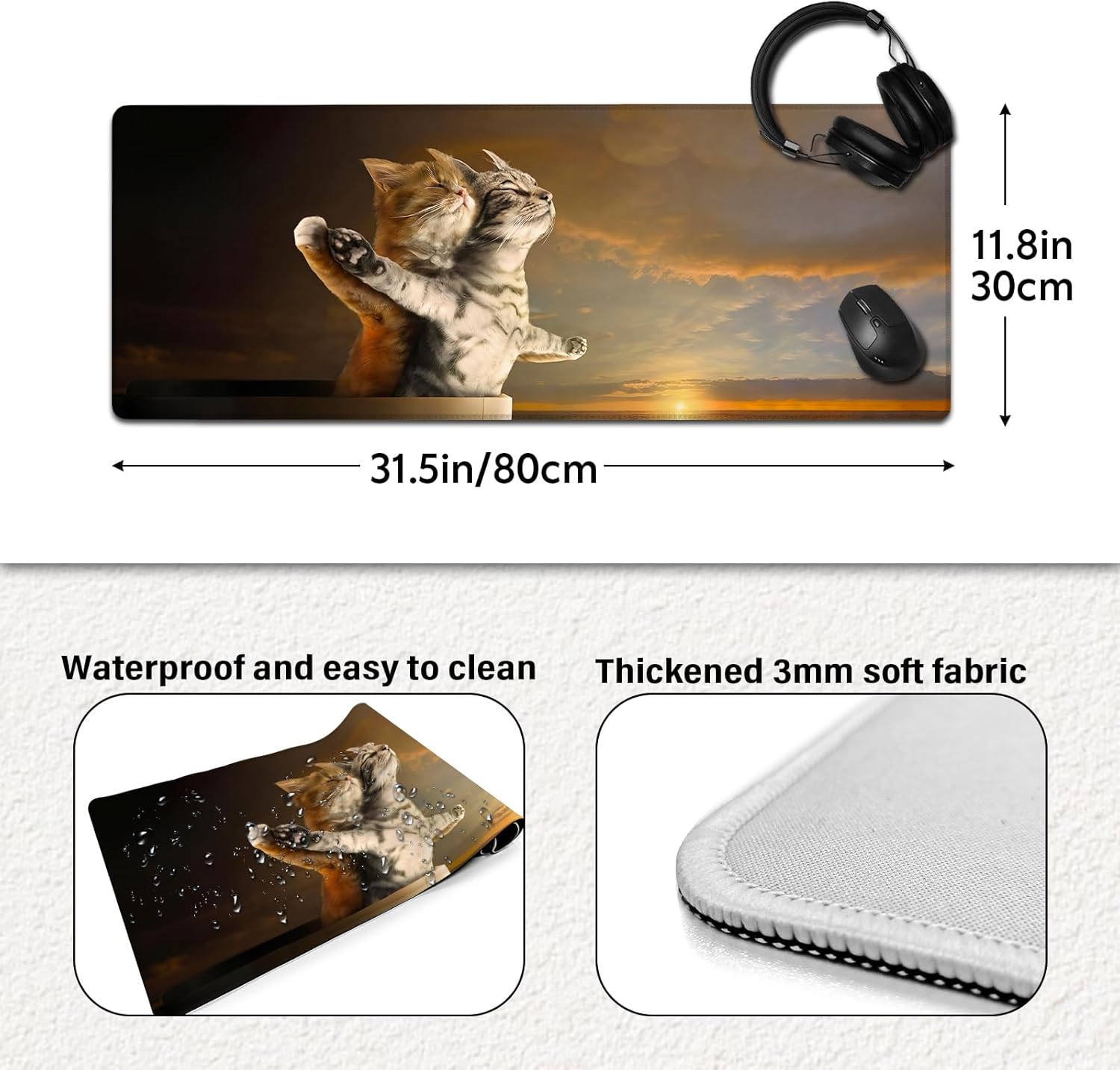 Titanic Funny Cat Mouse Pad with Sunset Scene - Large Non-Slip Desk Mat for Office, PC & Laptop - 31.5"x11.8" x 3mm