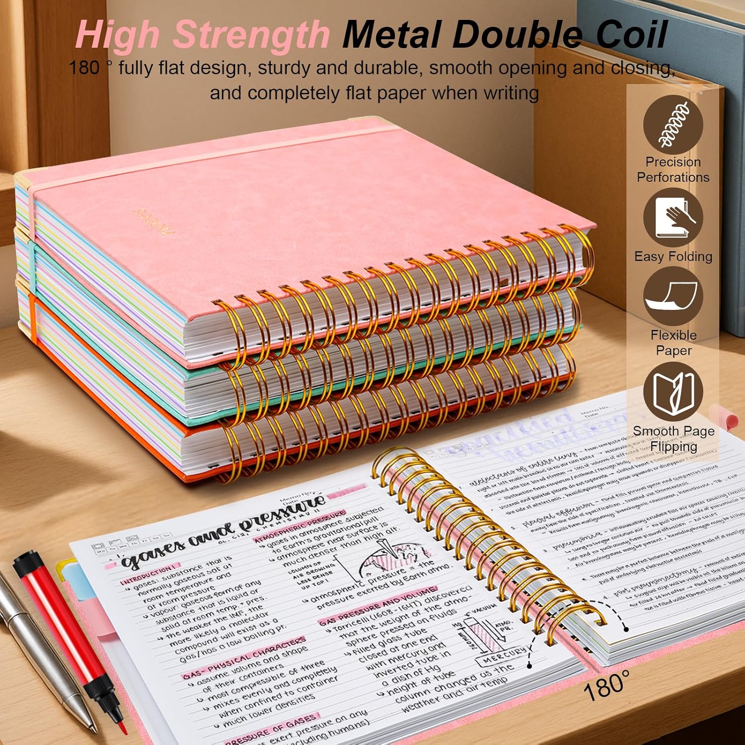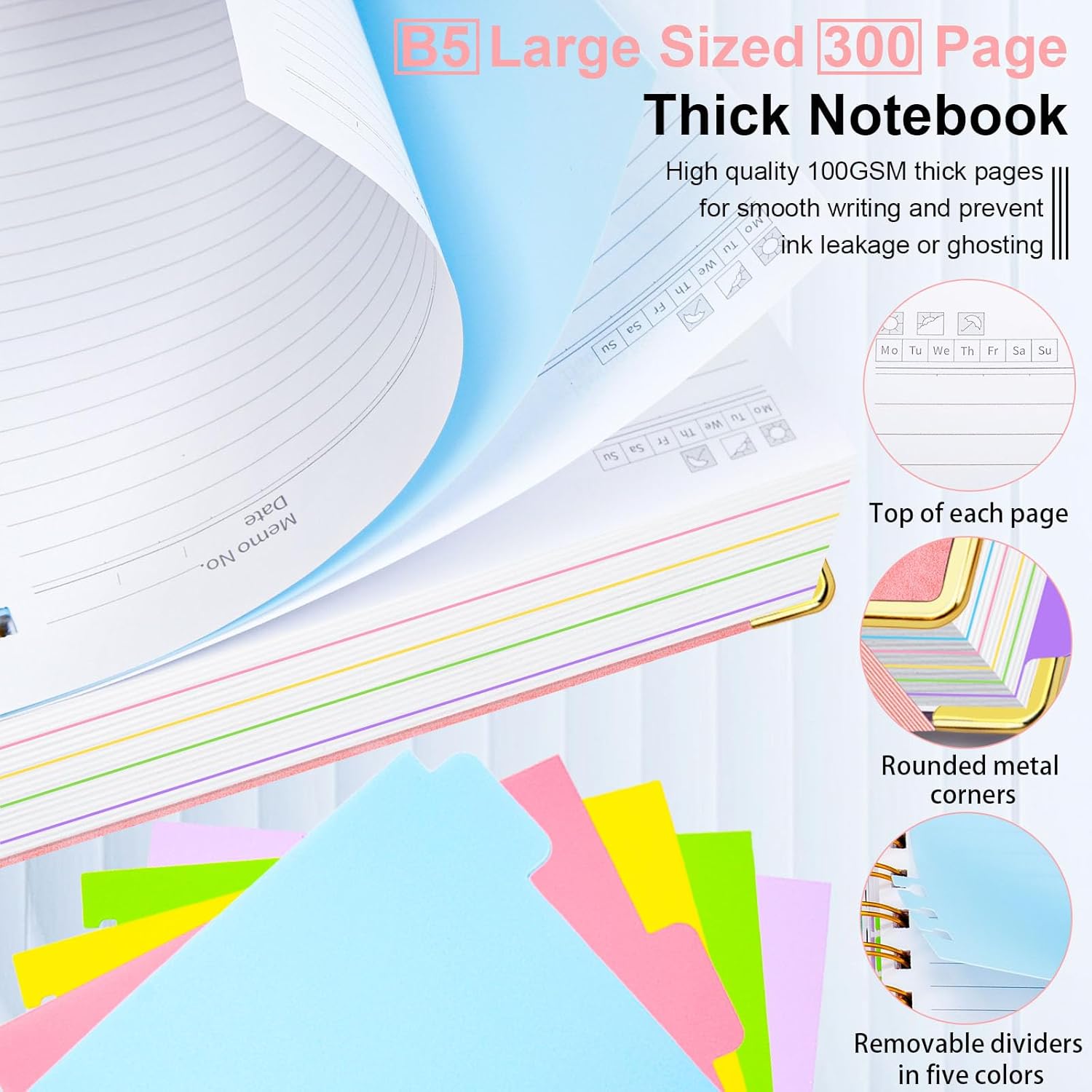 - 300 pages thick notebookļ¼This college ruled spiral notebook features 300 pages of thick paper that resists ink bleed and ghosting. The spacious B5 layout (8"x10") makes it perfect for long-term planning, study notes, and personal journalingāless bulk, more value.