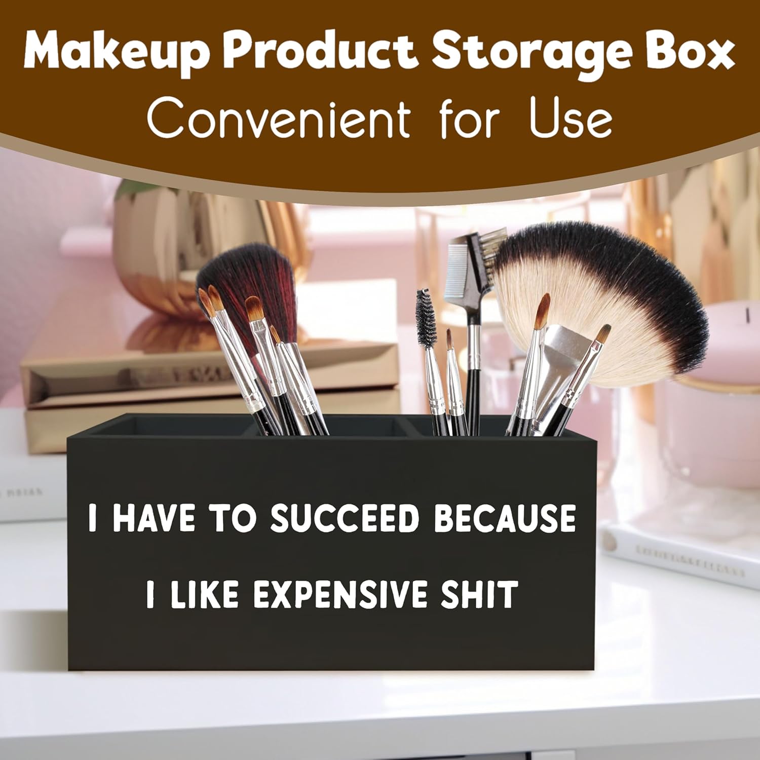 Funny Sign Decor Pen Holder for Desk, Funny Black Office Signs Decor, I Have to Succeed Because I like Expensive Shit, Amusing Decor Office Pen Holder for Women Men Desk Accessories