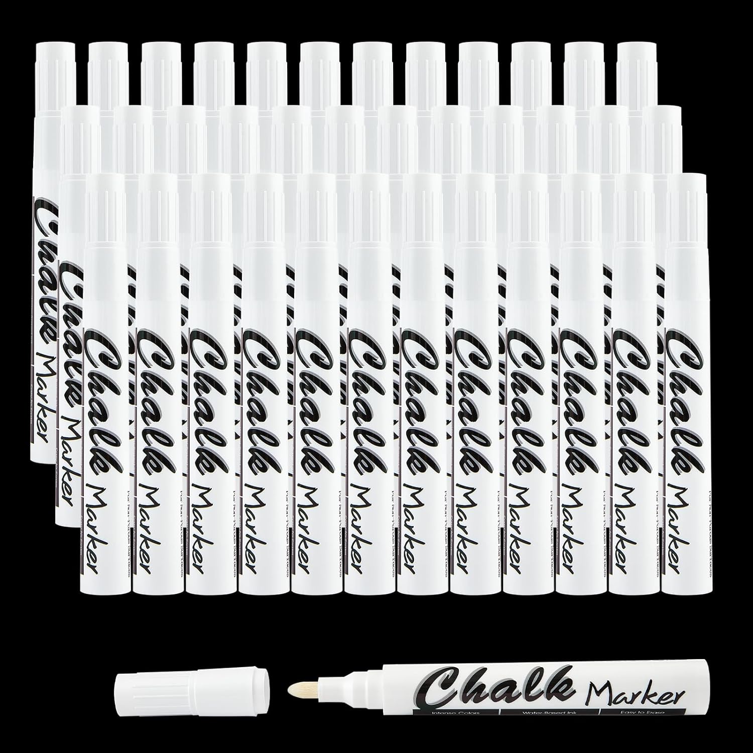 Volcanics White Liquid Chalk Markers 36 Pack Chalk Pens for Blackboard, Chalkboard, Windows, Glass, LED Board, Bistro Signs – Erasable Water-Based Ink Ideal for Teachers, Artists & DIY Projects