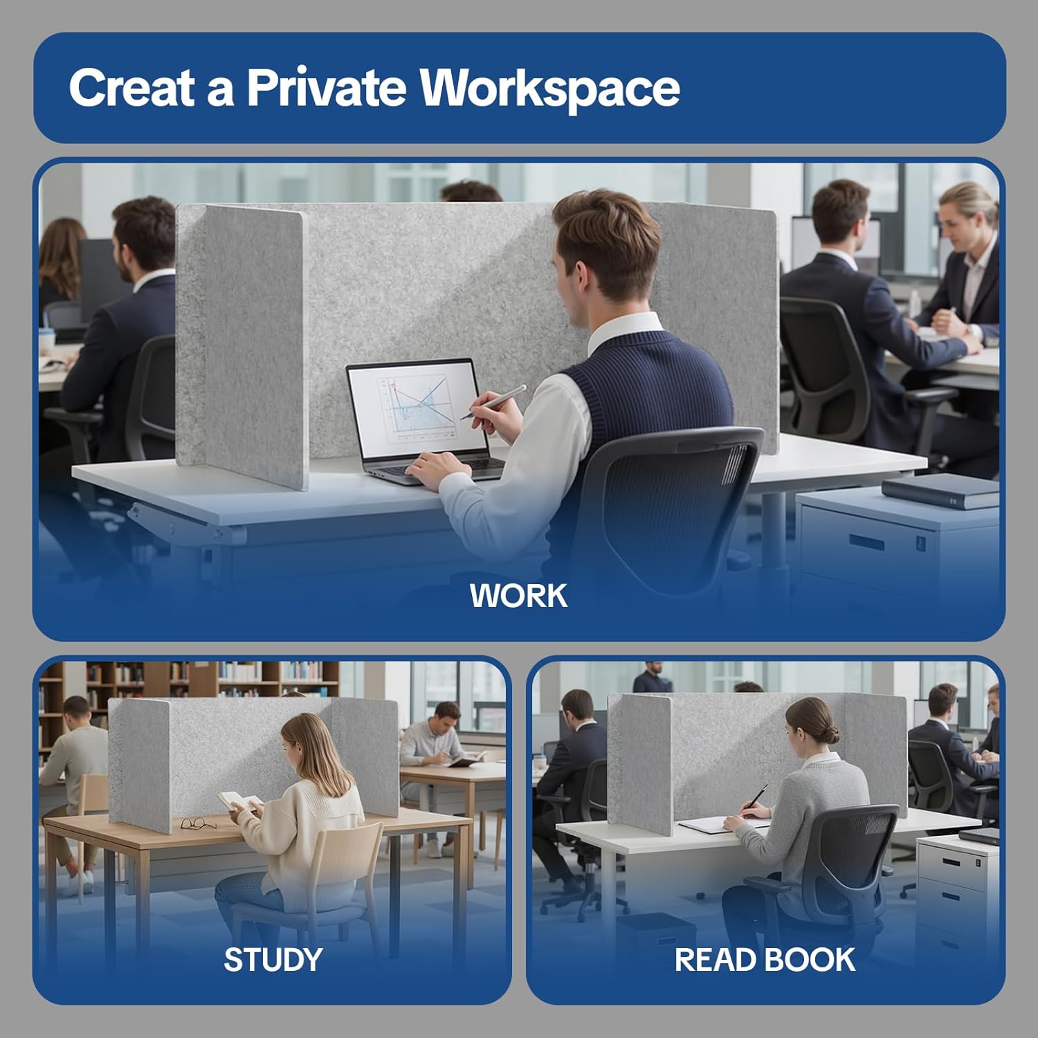 - 【Versatile for Office & Home】Ideal for creating safe, separated workspace in open office, home studios, libraries, and classrooms. Easily combine panels to fit your layout and promote distraction-free productivity for everyone.