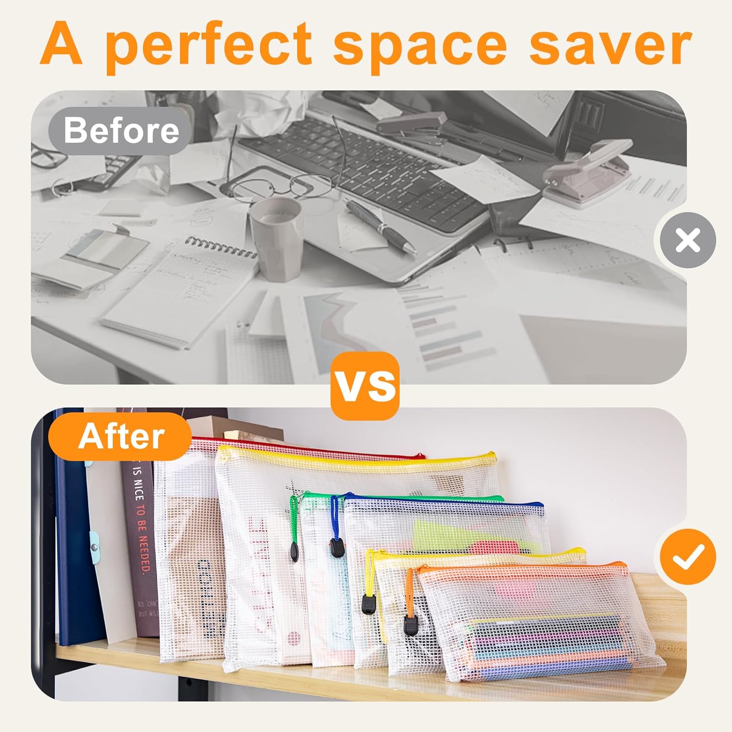 12pcs Mesh Zipper Pouch Bags, Waterproof A4 Letter Size Puzzle Bag for Organizing, Storage, Board Games and Office Supplies, 12 Colors