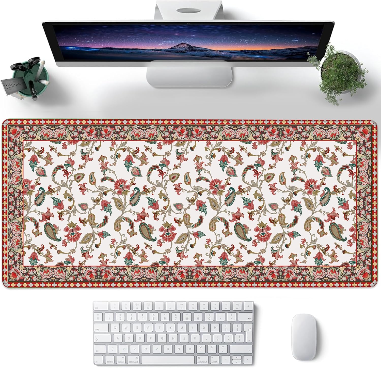 Desk Mat, Vintage Floral Large Gaming Mouse Pad with Non-Slip Base Stitched Edges,Desk pad for Keyboard and Mouse Home Office 35.4"x15.7"