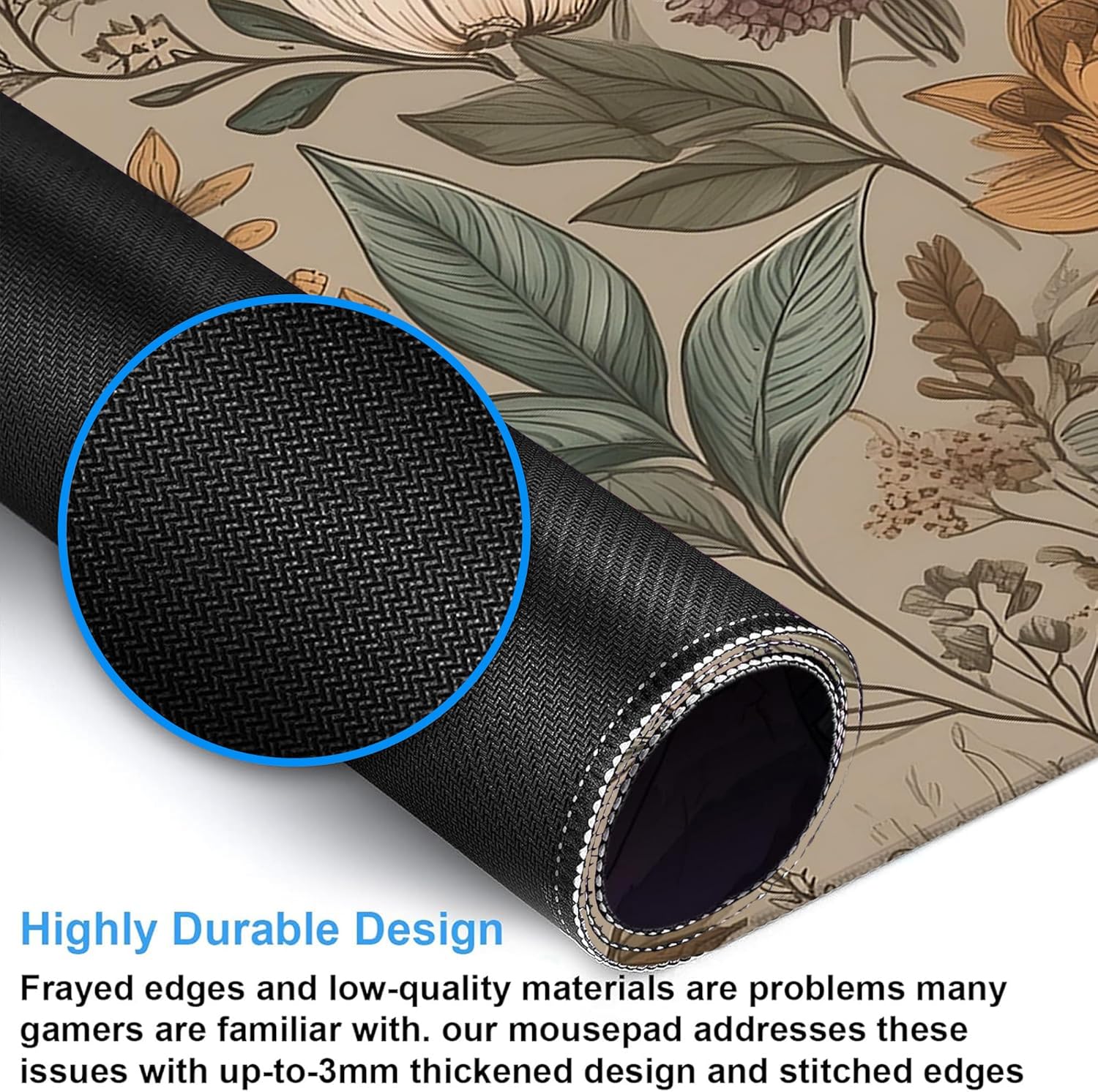 Desk Mat, Vintage Botanical Flowers Leaves Large Gaming Mouse Pad with Non-Slip Base Stitched Edges,Desk pad for Keyboard and Mouse Home Office 35.4"x15.7"