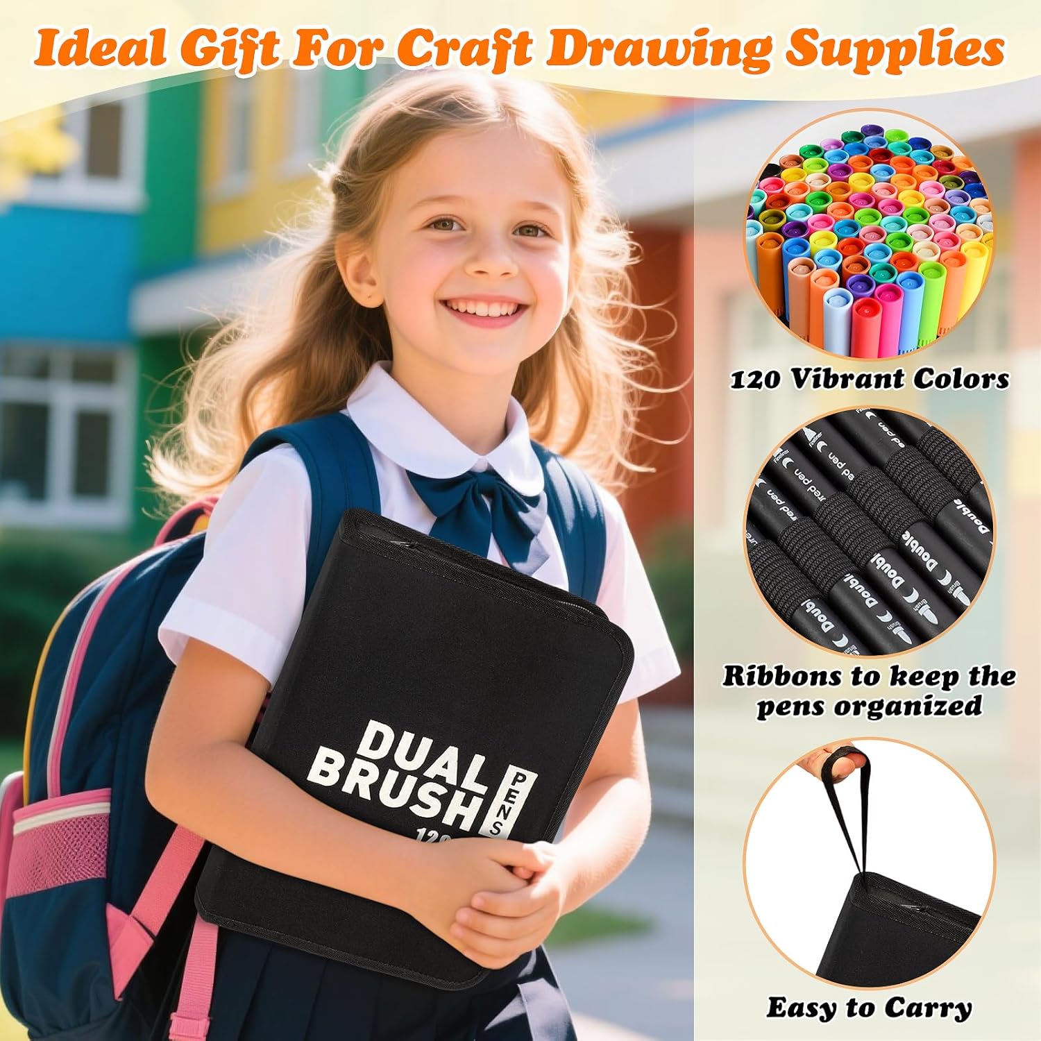 120 Colors Dual Tip Art Markers Pen for Adult Coloring Books No Bleeding, Artists Fine & Brush Tip Drawing Markers Pens for School, Journaling Painting Calligraphy Lettering Supplies for Adults Kids