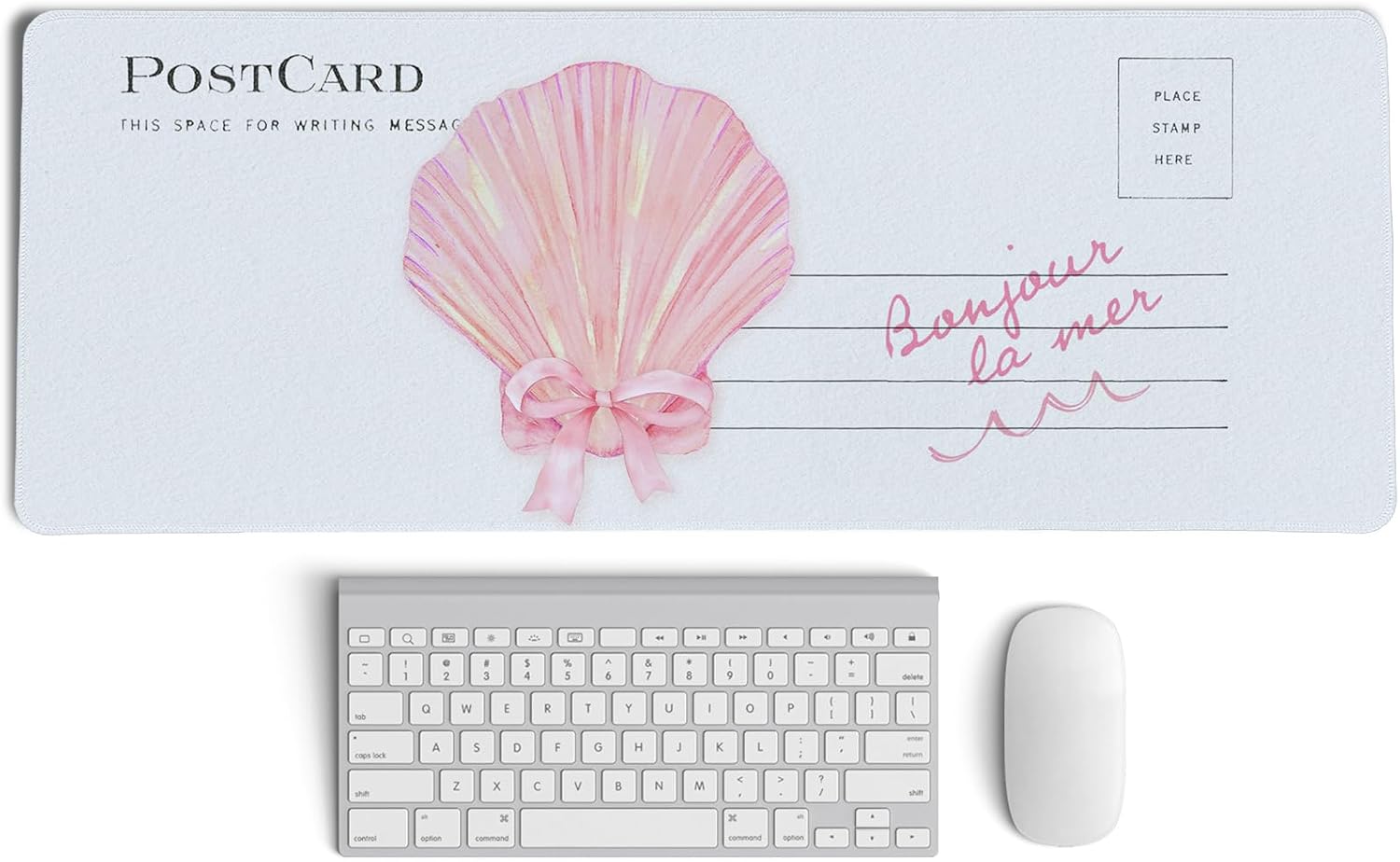 Pink Seashell Bow Mouse Pad,Ocean Themed Desk Mat,Pink XL Large Coastal Beachy Mouse Pad,Girly Summer Beachy Gaming Pads,Preppy Girly Desk Mat,Summer Beachy Desktop Decor Art,31.5x11.8 Inch