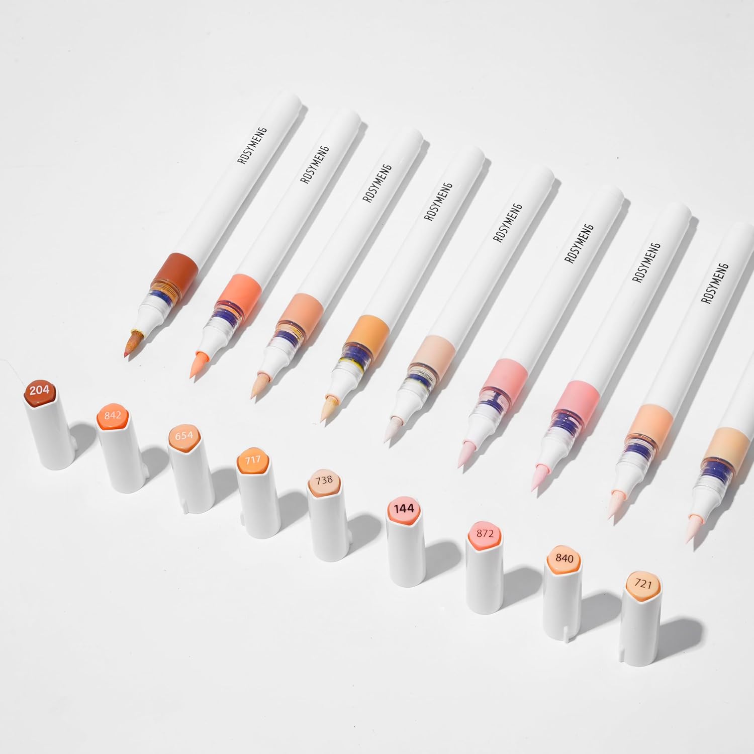 9 Color Acrylic Paint Markers, Water-Based Acrylic Markers for Artists Adults Coloring Drawing Cartoon Anime Comic - Brush Tip for Rock Painting, Wood, Canvas, Fabric, DIY Crafts (Pearl Pig Series)