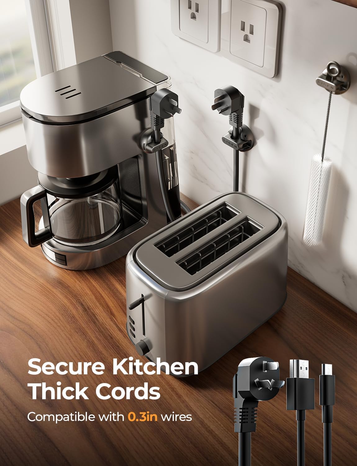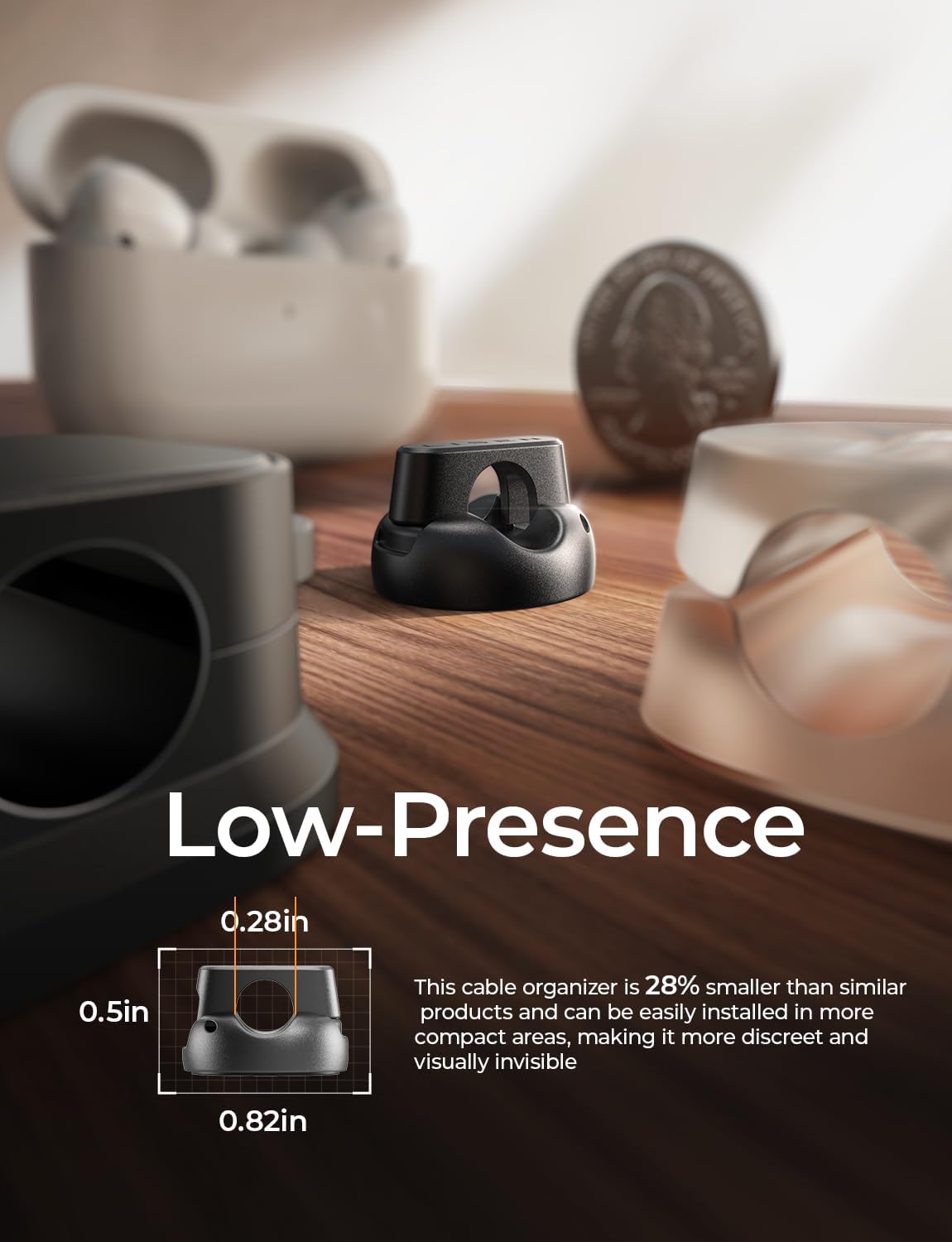 - Perfect Slot Size for Wide Cable Compatibility: With a 0.27-inch (7mm) slot diameter, this versatile cord holders for nightstand, also referred to as desk cable clips, works perfectly with phone chargers, USB cords, HDMI cables, power cords, and slim cables like the iPhone silicone charging cord. Enjoy smooth cable pulling and a clutter-free space
