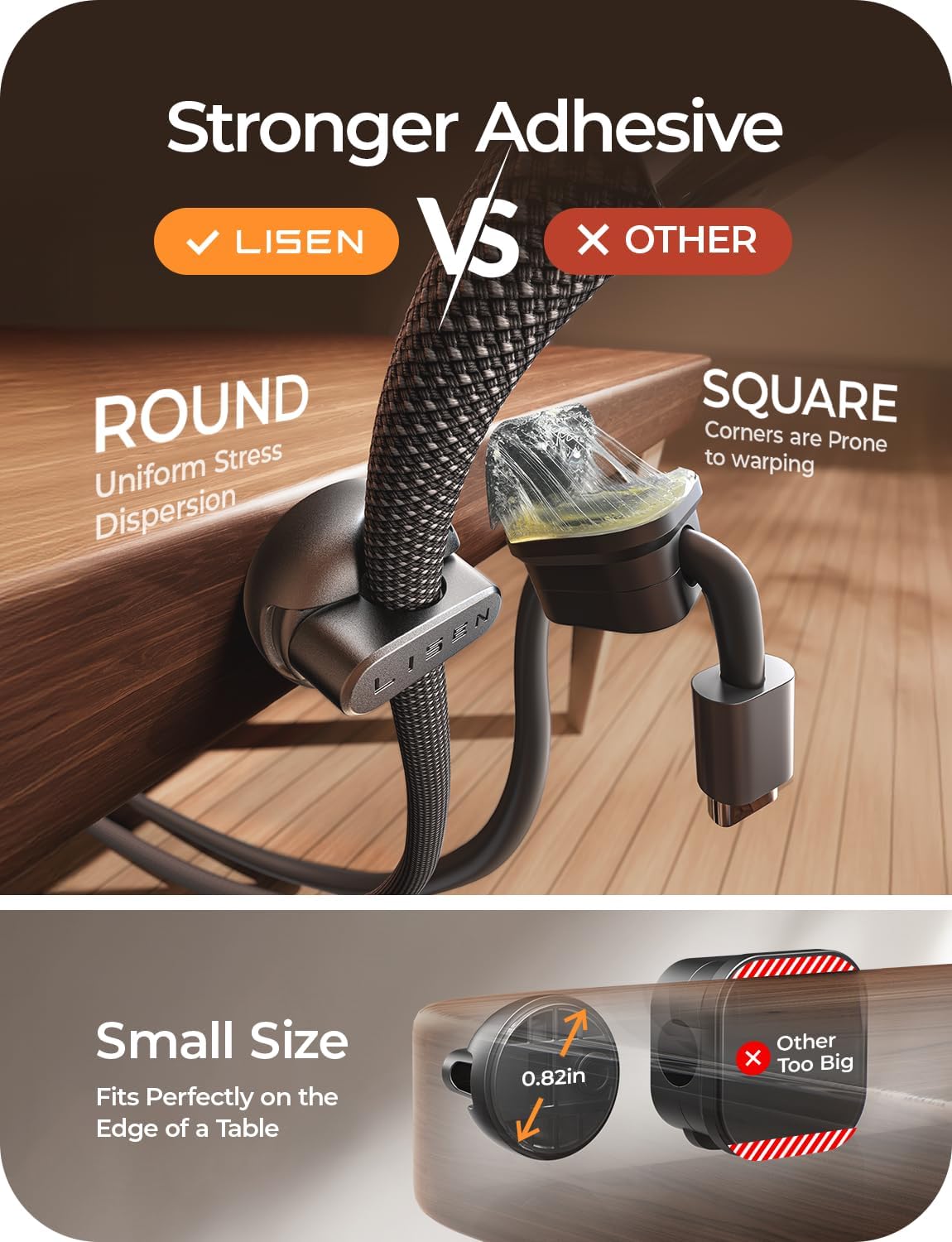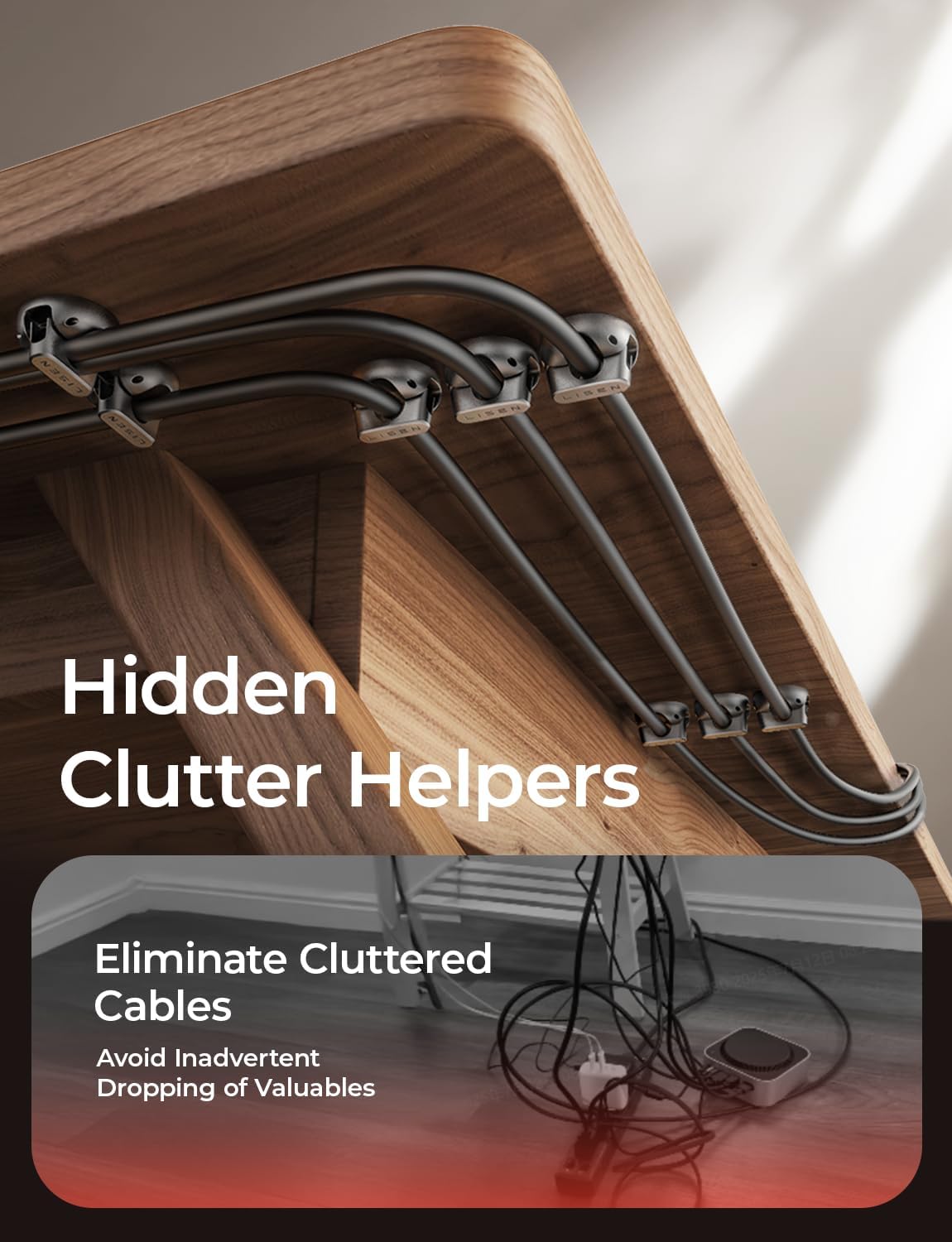 - No-Residue, High-Strength Adhesive: LISEN cord organizer for desk uses premium acrylic adhesive, stronger than 3M tape and leaves no residue. With 4 extra adhesive pads, magnetic clips has strong adhesion and flexible installation. Wire organizers for cords can firmly stick to smooth and dry surfaces like wood, glass and ceramic tiles. The transparent pads won't damage furniture, suitable for home and office. Easily manage and tidy up cords, improving space neatness and functionality