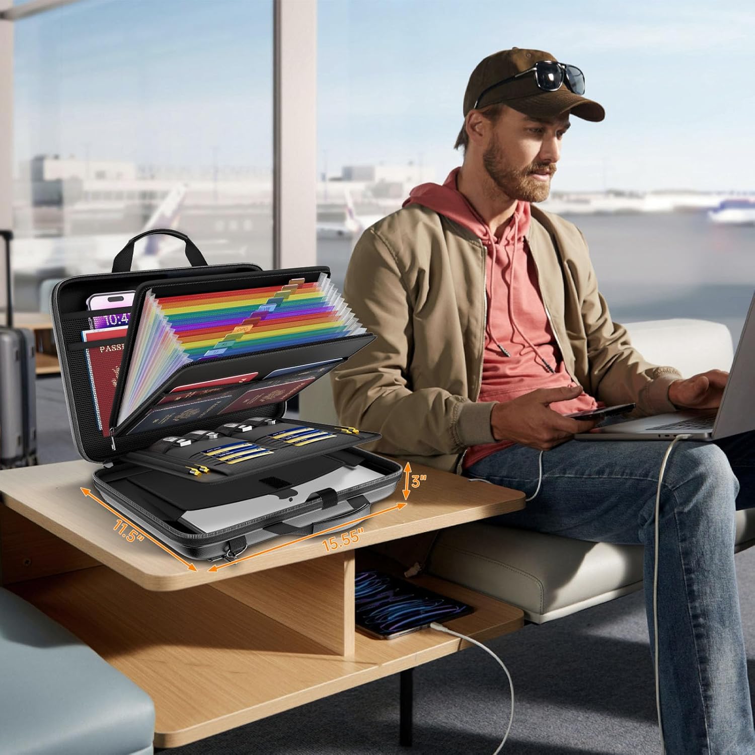 - [Fireproof & Water-Resistant File Organizer]:Engineered with thickened silicone-coated fiberglass and hard-shell material, our fireproof folder passes the SGS UL-94 VTM-0 buring test and repels water/floods. The sturdy hard-shell material provides superior dustproof and scratch-resistant protection for your documents, laptops, electronics, and other valuables.
