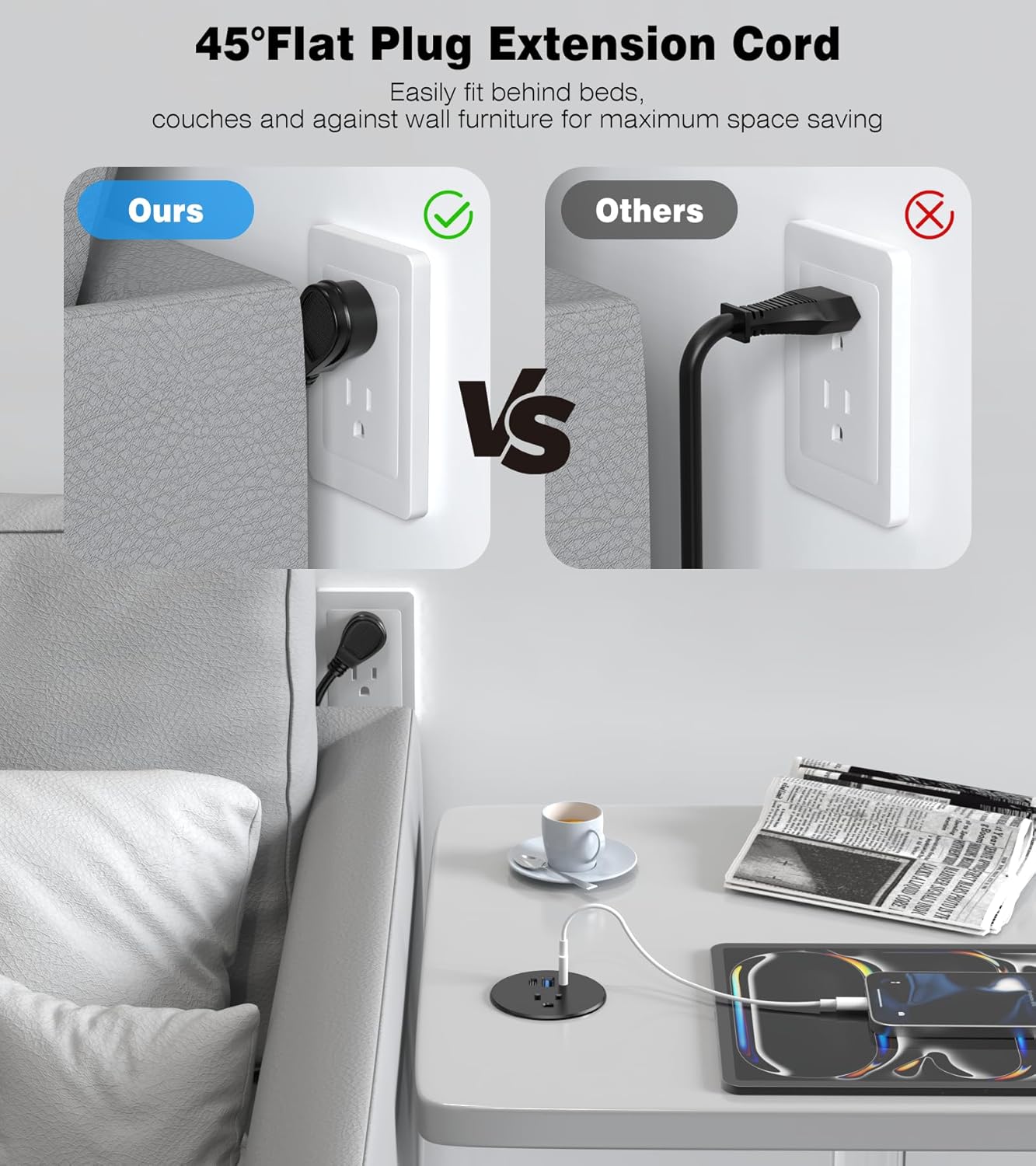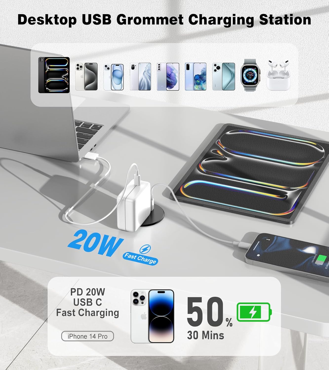 - Fits Standard 2.5 Inch Cable Holes: Suitable for all types of desks and countertops, including coffee tables and workspaces. The compact design ensures flexible installation, keep your workspace neat and organized by getting rid of bulky adapters and tangled cords. Perfect for charging multiple devices in homes, offices, or schools.