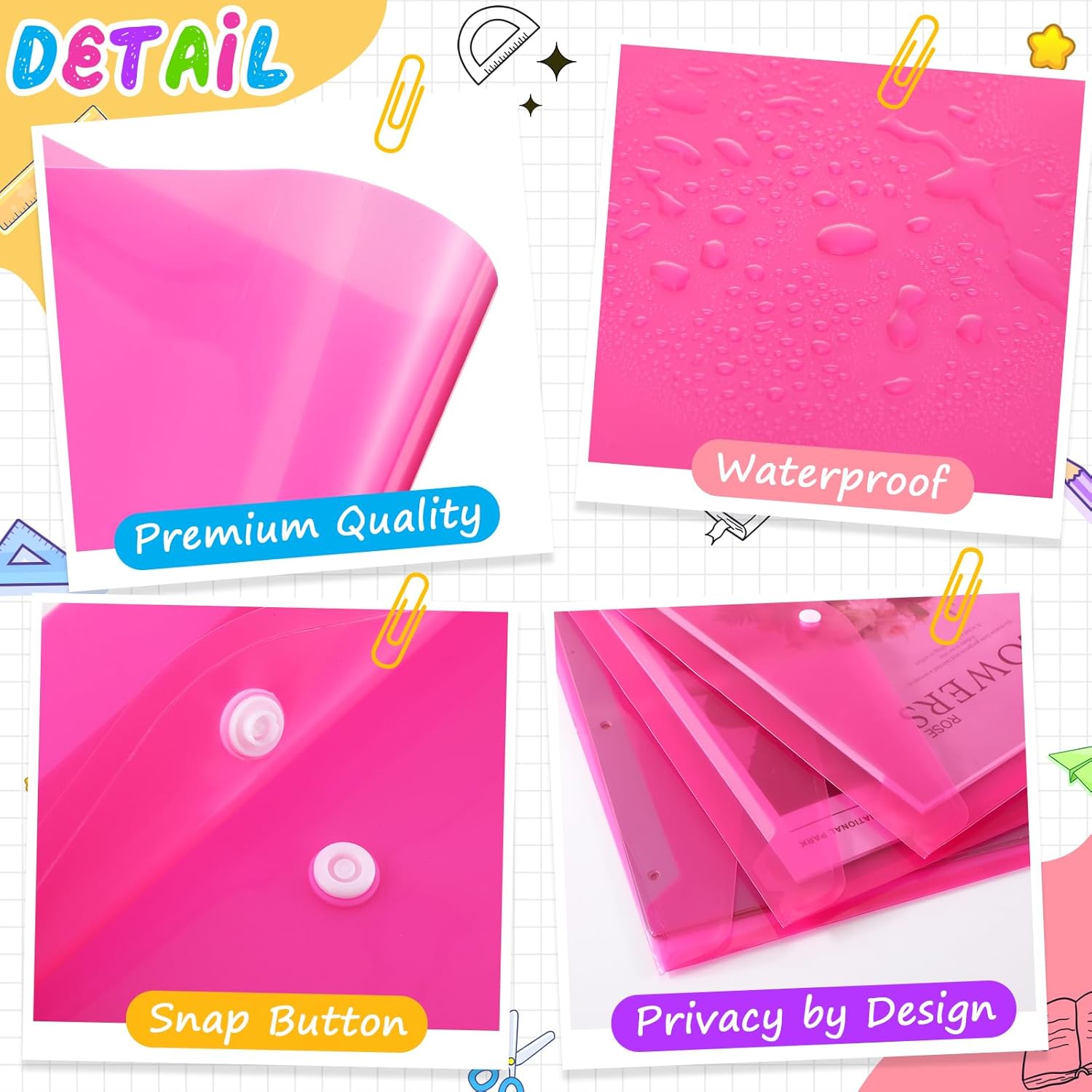 - Suitable Size: our transparent plastic envelopes measure about 12.8 x 9.25 inches, suitable for A4 size paper, allowing you to put many things into the folder, can tightly protect your important documents while being easy to access. Pink design can protect your files and privacy to a certain extent