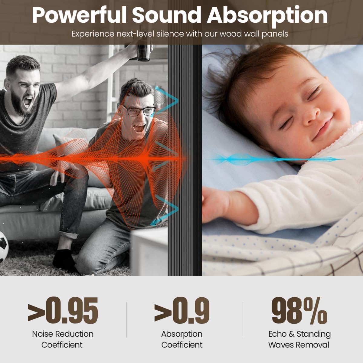 2 Pack Acoustic Wood Panels for Wall and Ceiling, 47.2" x 23.6" Wood Slat Wall Panel for Noise Reduction, Decorative Sound Proof Paneling for Office Studio Home Theater Kitchen Island, Black