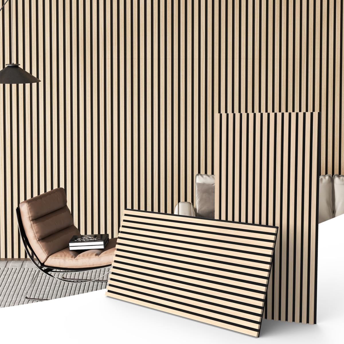 2 Pack Acoustic Wood Panels for Wall and Ceiling, 47.2" x 23.6" Wood Slat Wall Panel for Noise Reduction, Decorative Sound Proof Paneling for Office Studio Home Theater Kitchen Island, Oak