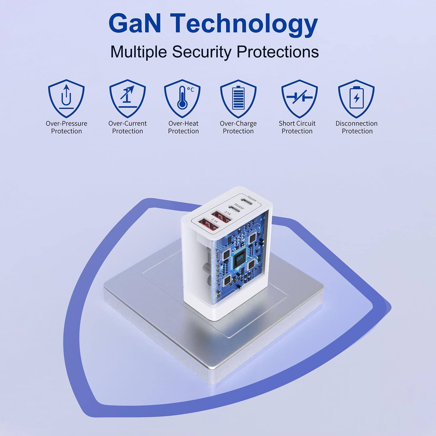 - 【4-Port Fast Charging for Multiple Devices】Equipped with dual USB-C + dual USB-A ports, 55W usb c charger block lets you power up your phone, tablet, and headphones simultaneously—no more waiting. Delivers 3x faster charging than standard 5W adapters!