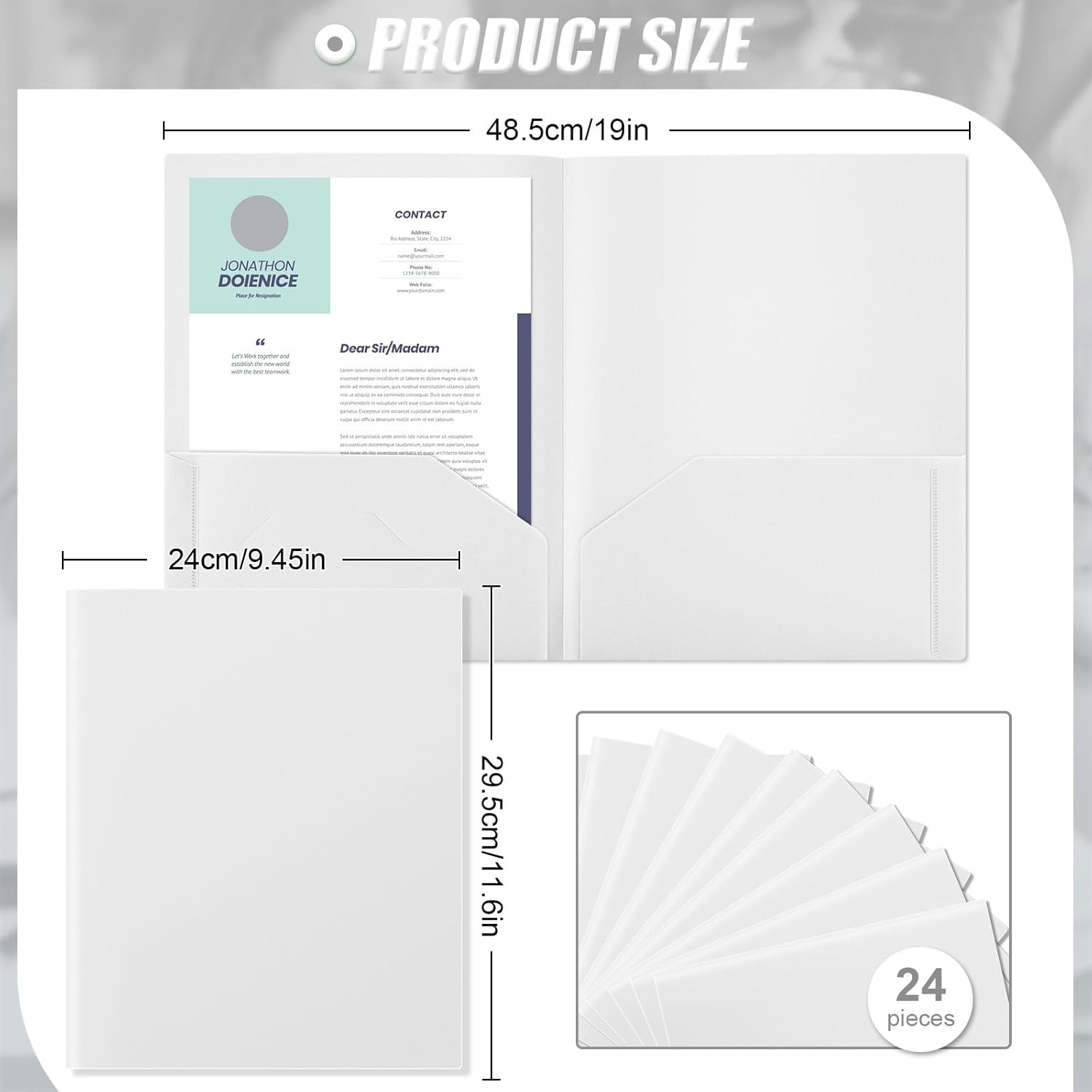 • Enough Quantity to Use and Replace: you will receive 24 pieces white plastic folders, each is designed with 2 pockets, fitting 8.5 x 11 inch letter size paper; Each pocket can stack 50 pages of letter size paper easily and neatly