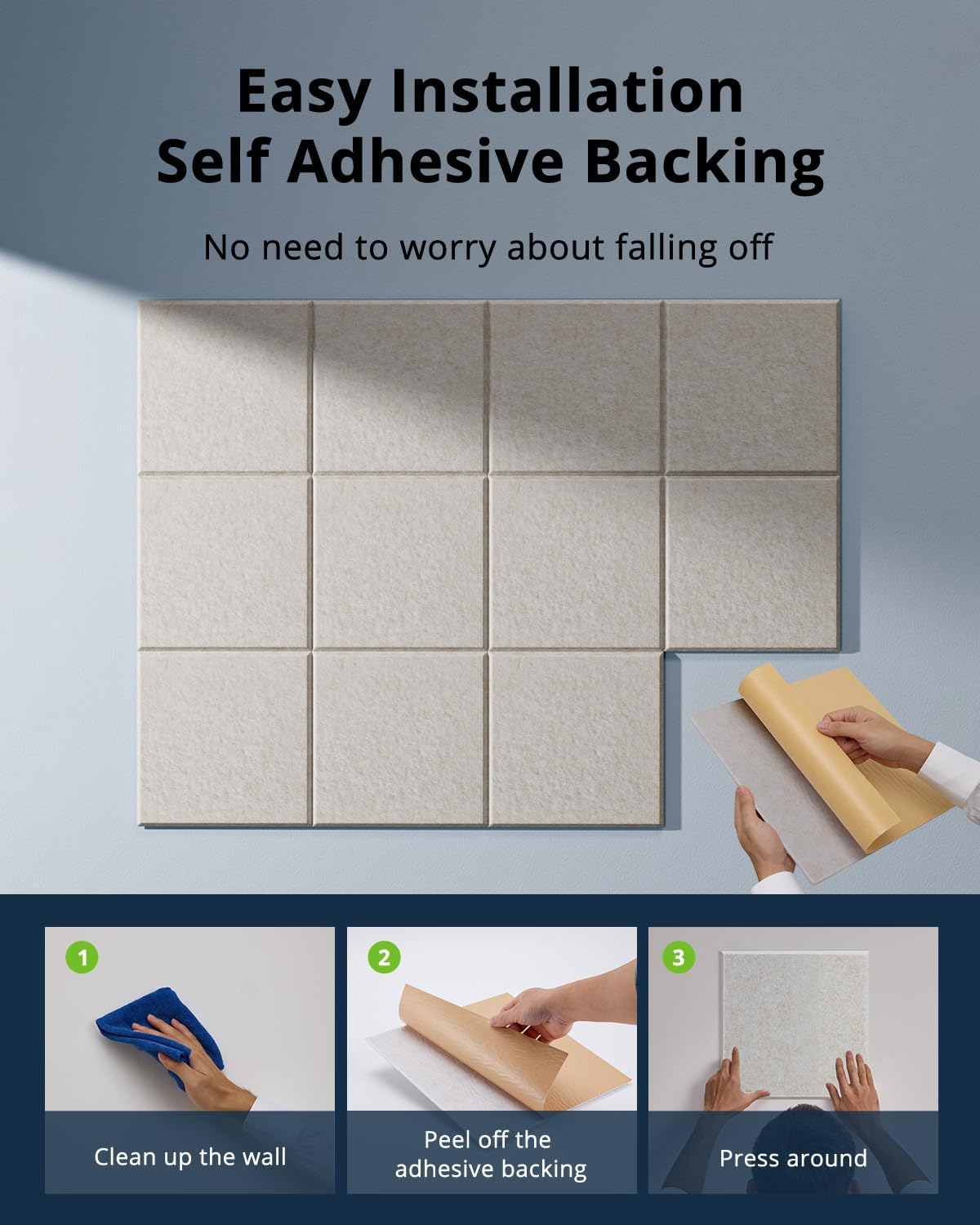 - Self-Adhesive & Easy Installation: The soundproofing panel has a self-adhesive design, making installation quick and easy. Just clean the wall, peel off the back adhesive, and stick sound panels noise reducing on the wall to improve the soundproofing effect of the room, very convenient