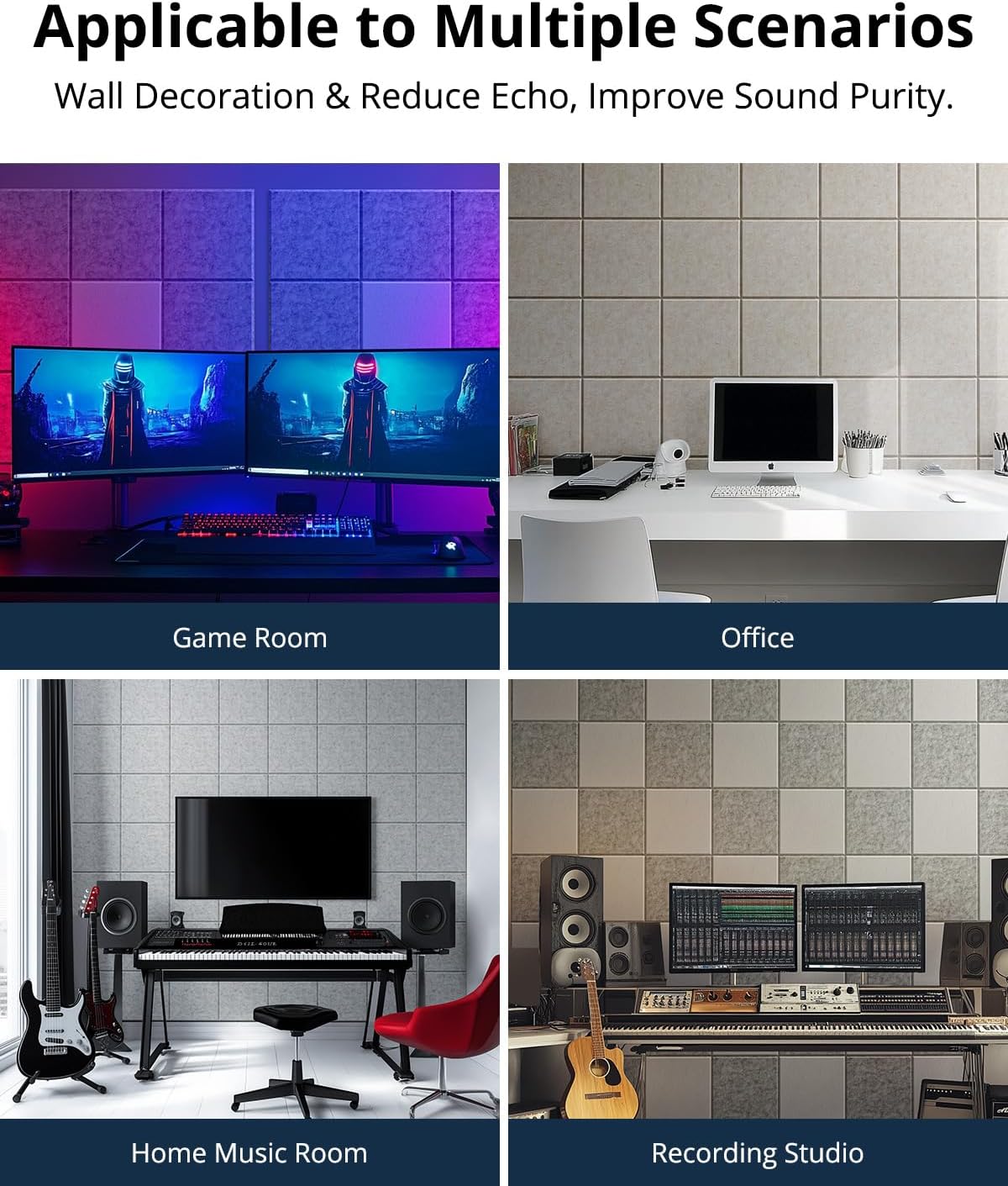 - Versatile Use: The sound proofing function of the sound proofing panel makes it suitable for use in any scenario with sound requirements. Whether it's the bedroom, living room, home theater, or studio, recording room, music room, acoustic foam panels is very applicable. Additionally, sound proof panels can be placed on the walls of the home for aesthetic reasons, adding a comfortable feeling.