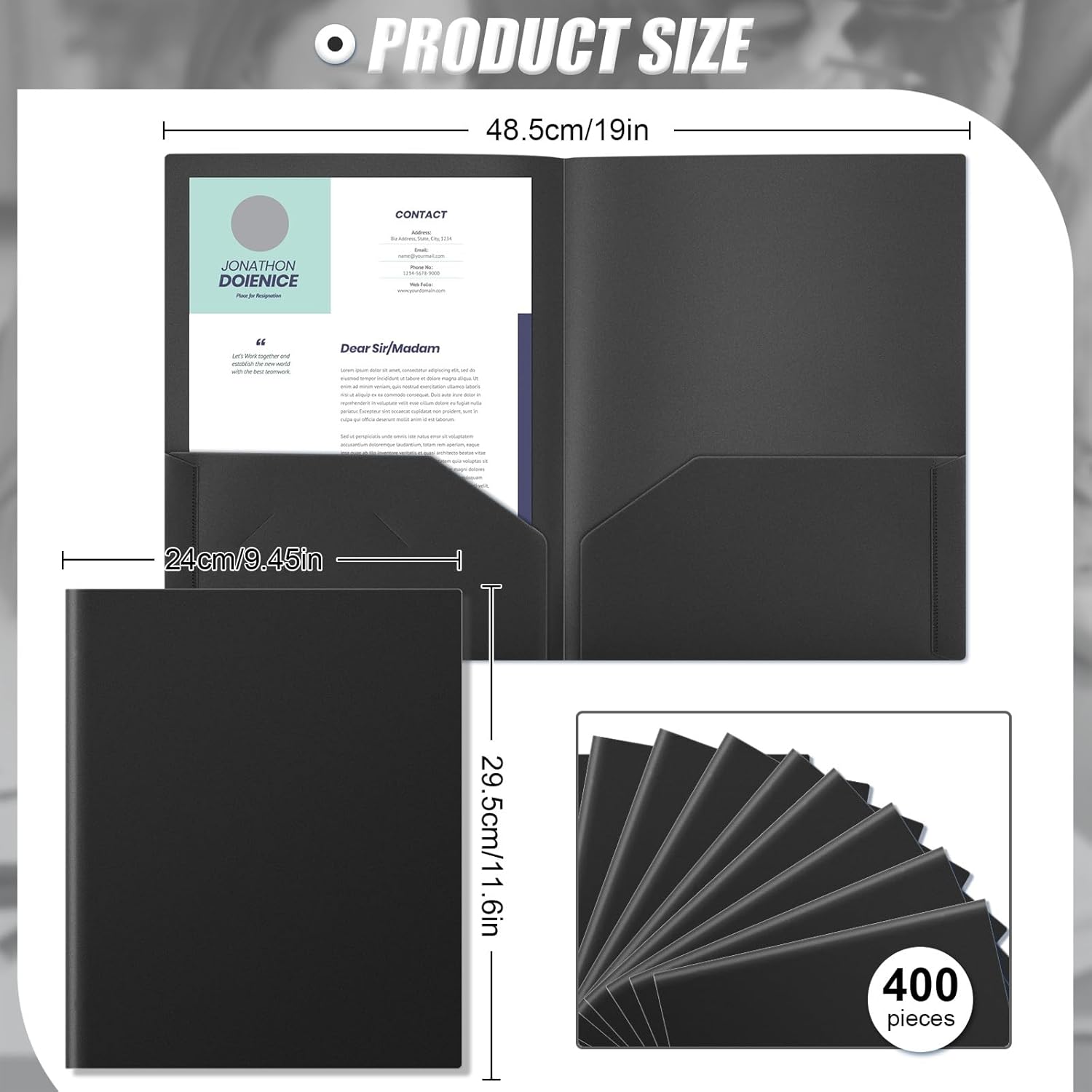 • Package Included: you will receive 400 black pocket folders, each folder is designed with 2 pockets, suitable for holding 8.5 x 11 inch letter size paper, each pocket can easily and neatly stack 50 letter size pages paper, sufficient quantity to meet your daily use and replacement needs
