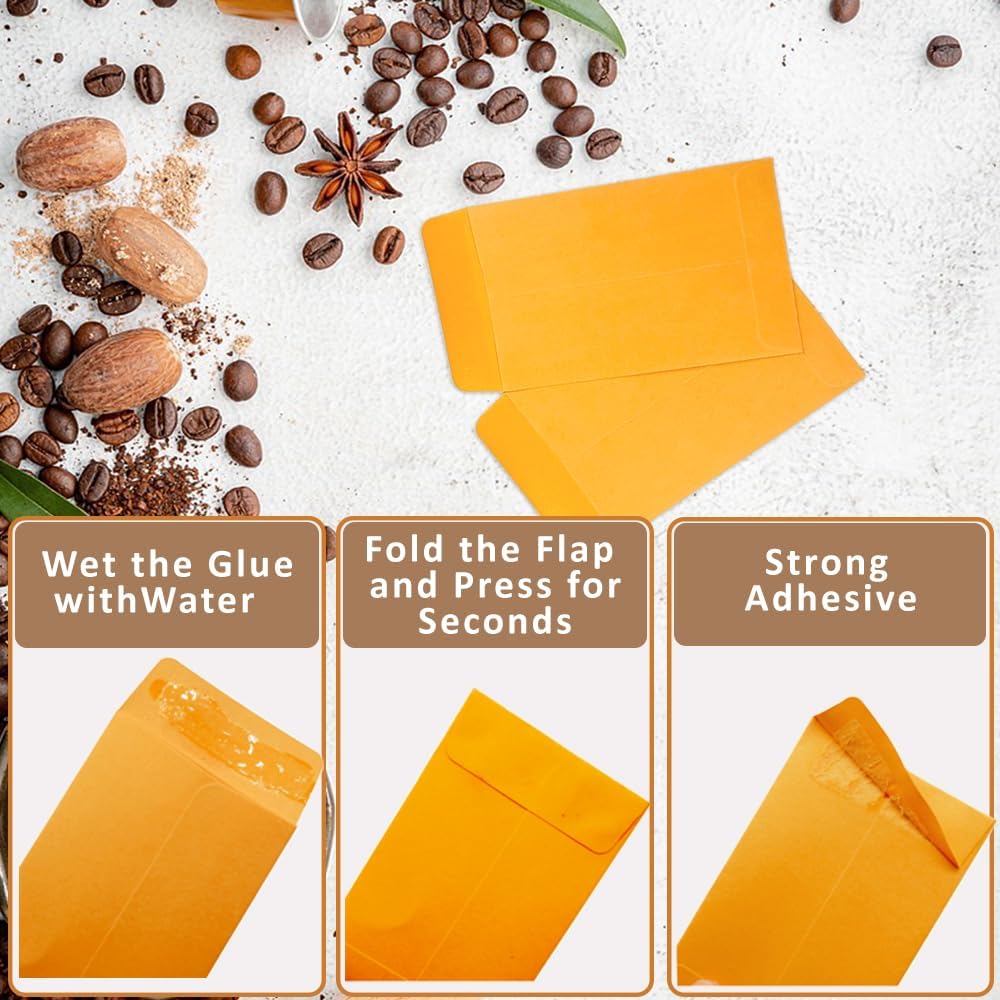 #1 120 Pcs Small Coin Envelopes 2.25" x 3.5" with Gummed Flap, Yellow Kraft Mini Envelopes for Storing Keys, Stamps, Seeds, Tips and Small Items (120)