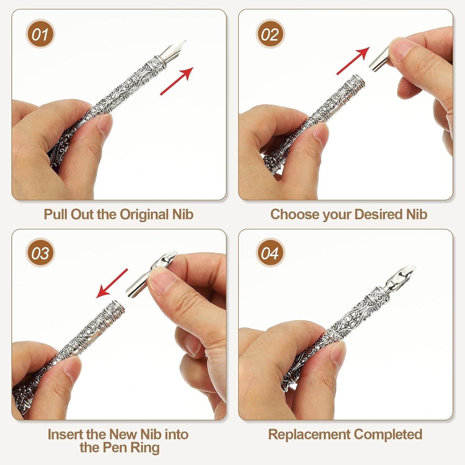 - Easy to use, dip the pen nib into ink, then write or draw on paper. To replace the nib, just pull out the old nib and firmly insert the new nib into the ring.