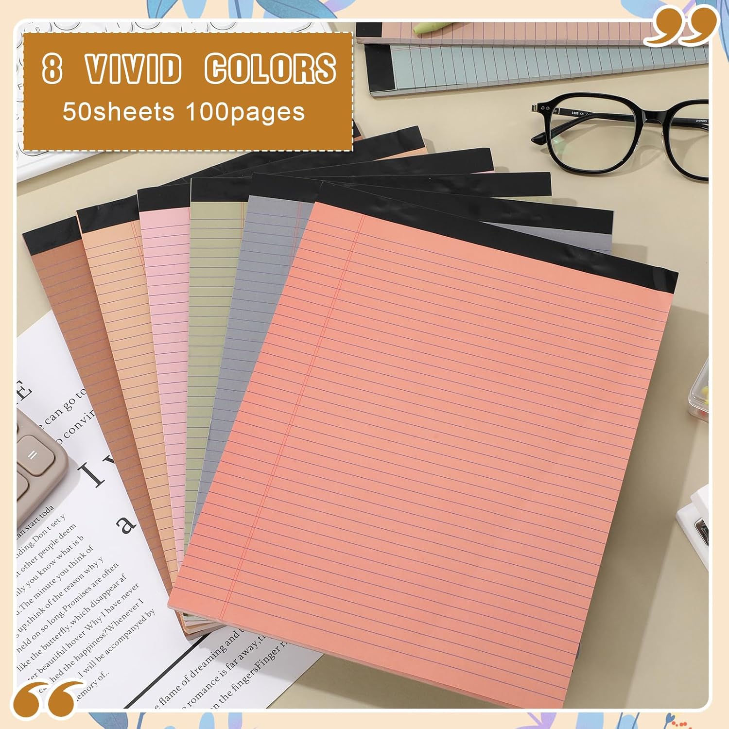 - Enough Quantities: the package includes 8 pieces of small notepads in 8 inner page colors, 1 piece for each color, 50 sheets in each pad, and the size of each sheet is about 8.5 x 11 inches, the sufficient quantity and suitable size can meet your daily use and replacement needs