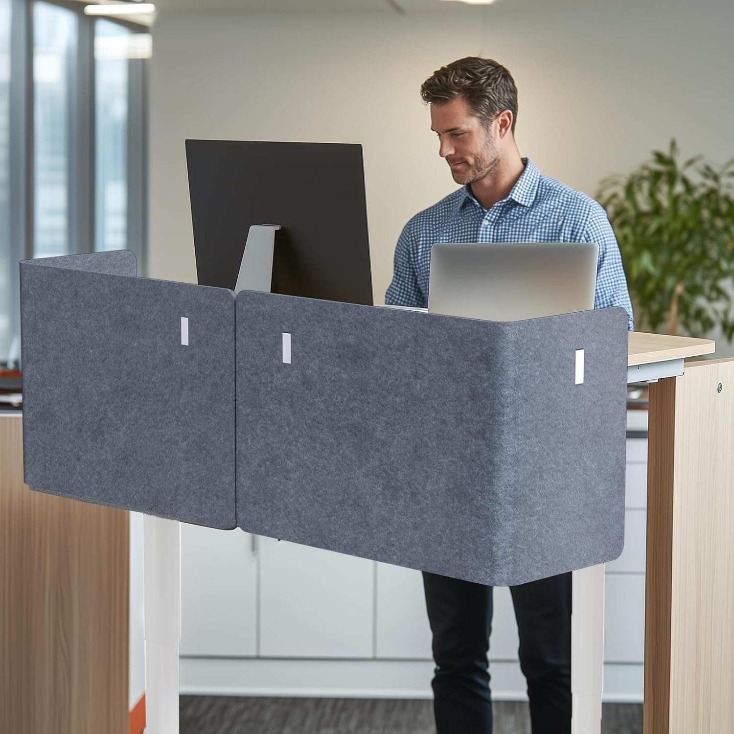 - VISUAL AND SPACE PRIVACY β The desk privacy panels are 17.7 inches high and sit on top of the workstation, providing privacy for school, work, or office. The acoustic desktop divider blocks views and reduces noise, creating a more focused and independent space.