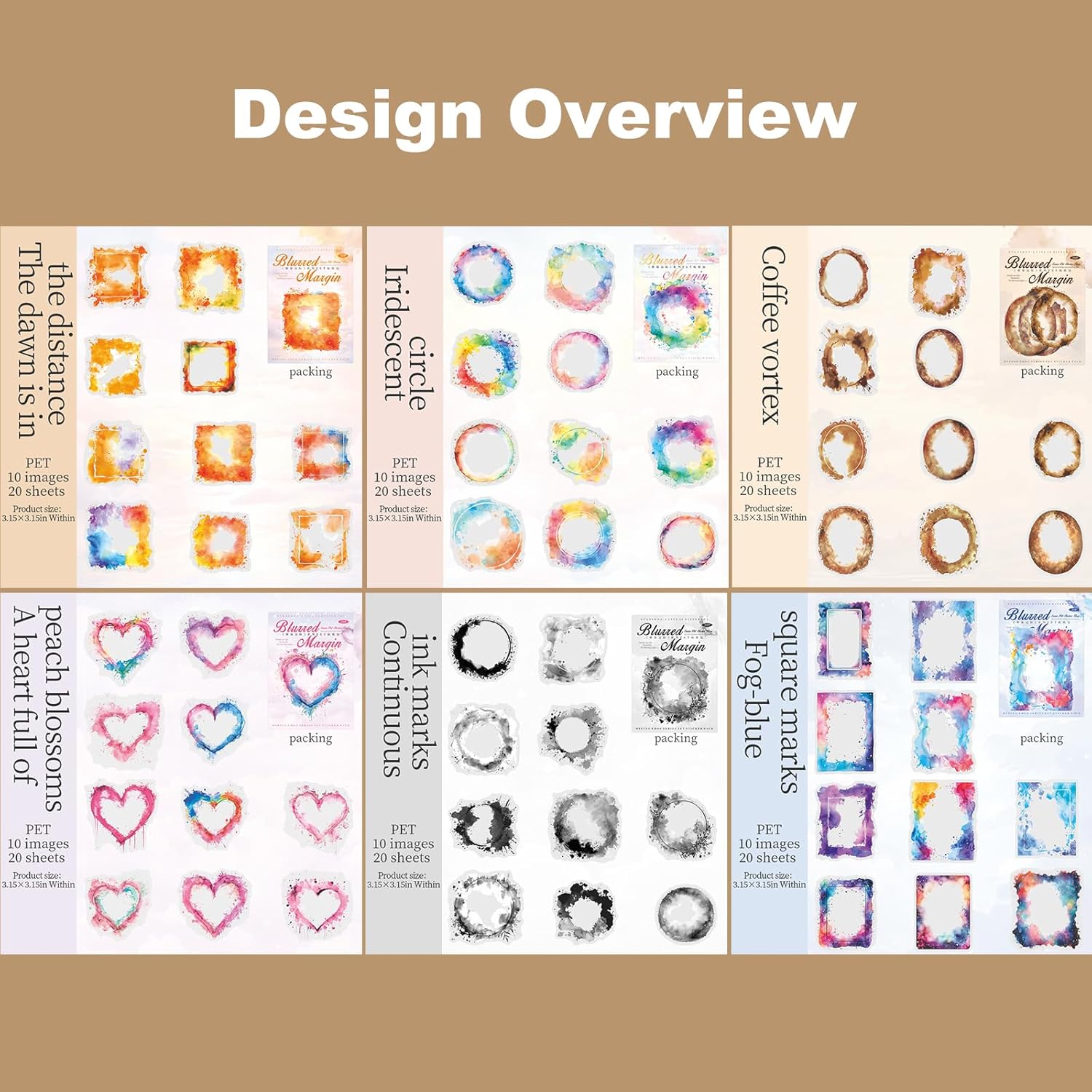 Frame PET Sticker Set, 120PCS Watercolor Blending Borders for Scrapbooking, Journaling, and Craft Supplies