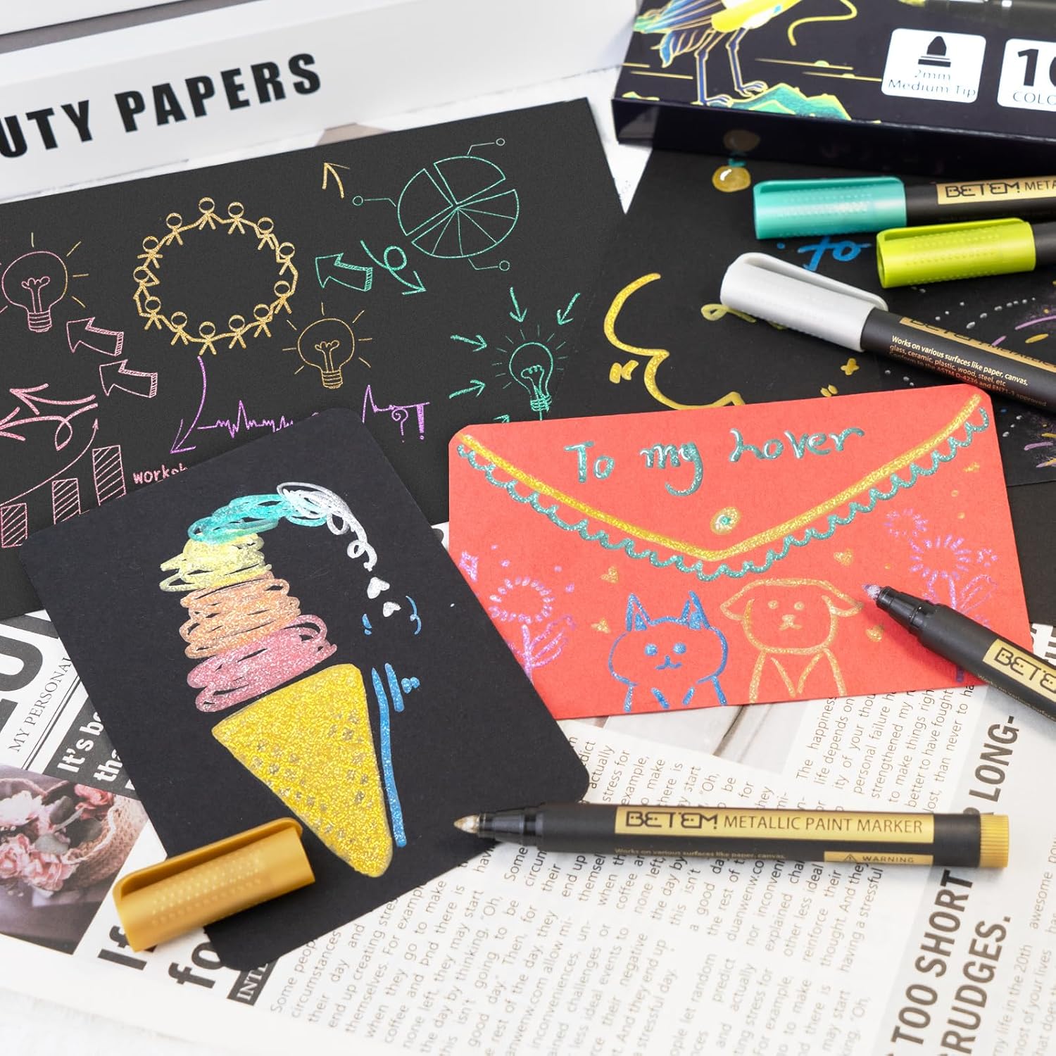 • 【Unique Art Supplies】Betem metallic marker pens are not only adorable and practical gifts for artists, art hobbyists and beginner, but also useful art supplies that can be customized with your own meaningful gifts for Christmas, birthdays, Halloween, Valentine's Day or other special anniversaries.