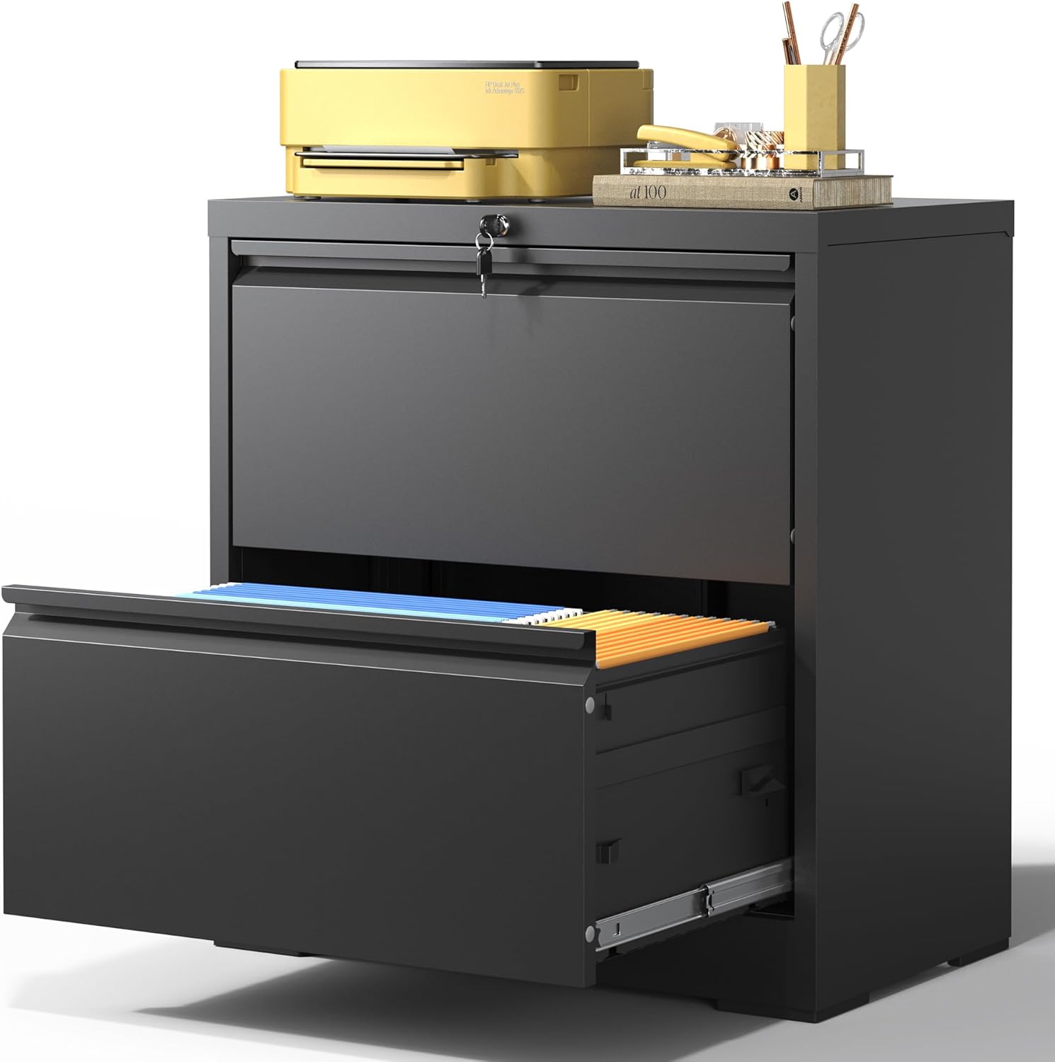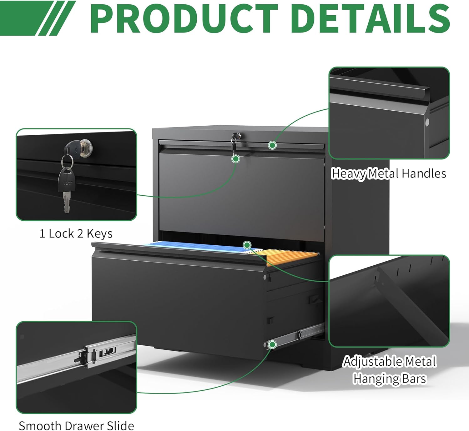 2 Drawer Lateral File Cabinet with Lock, File Cabinets for Home Office Legal/Letter A4 Size, File Cabinet Storage Cabinet,Require Assembly, Black