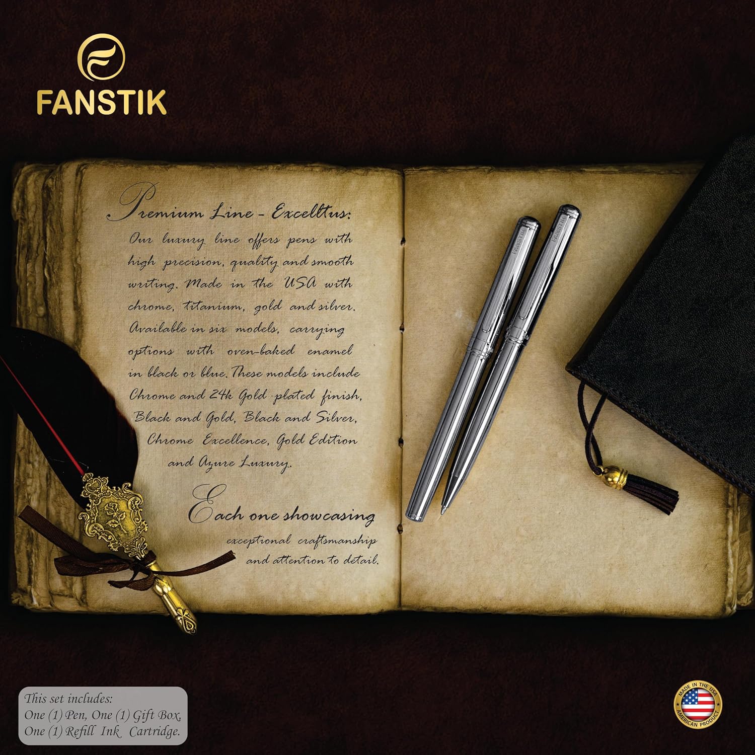 Silver Luxury fountain pen (Made In USA) fancy gift set for women, Real 24K Gold Plating, Professional executive pen gift set for men (Lux fountain Silver)