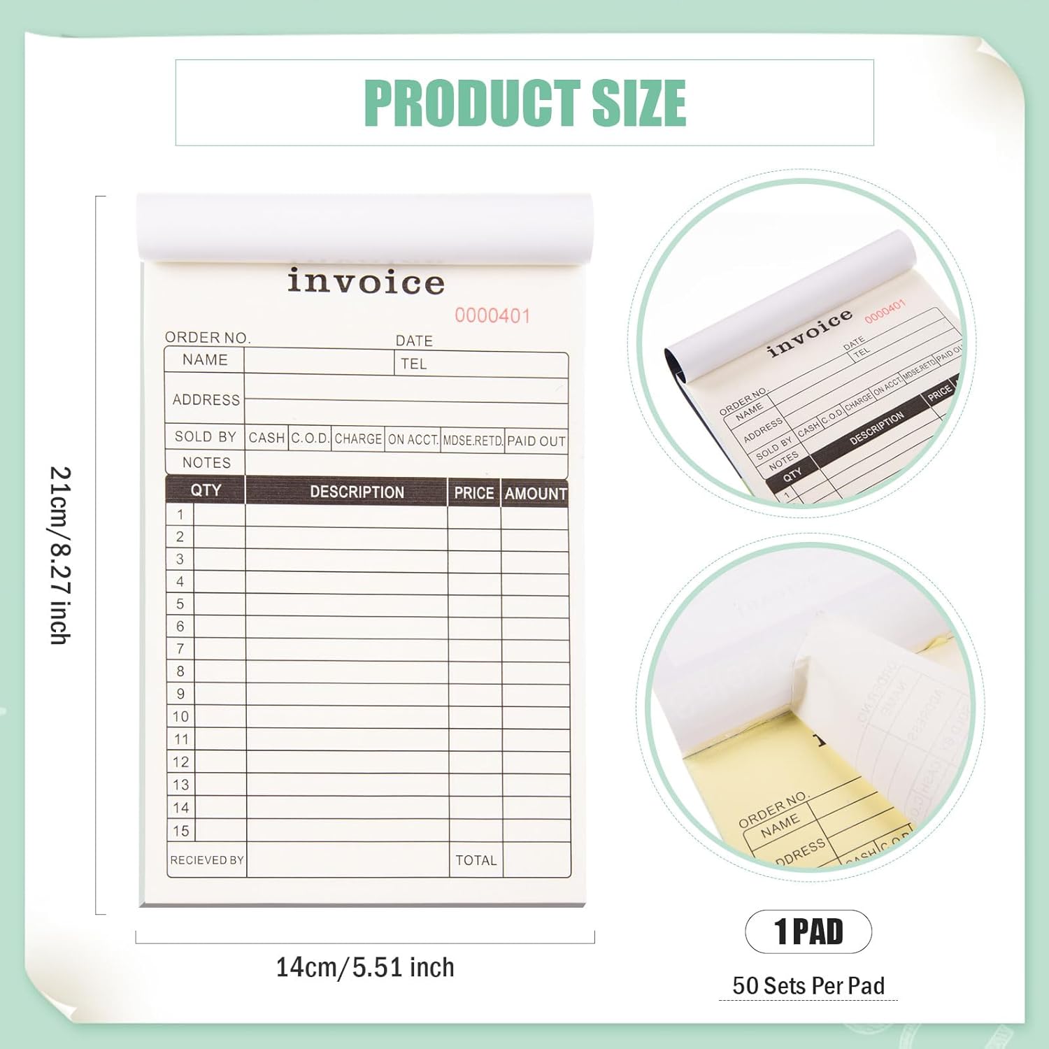 - Sales Order Book: you will receive 1 pad of sales order book with 2 parts, each pad contains 50 sets, including 50 white paper and 50 canary paper, a sufficient quantity can fully meet your daily use and replacement needs