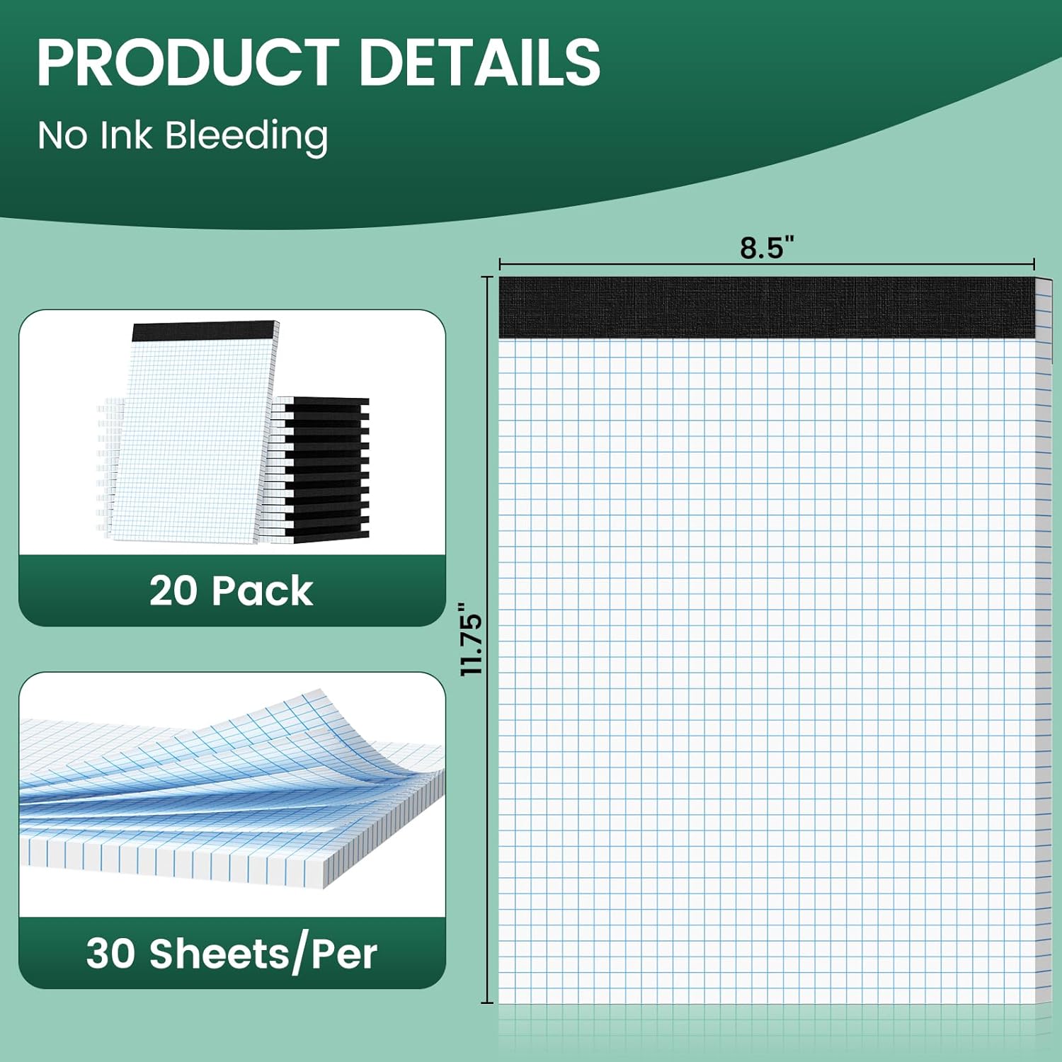 - PREMIUM PAPER:Graph paper notebook made 70 GSM thick paper, these graphing paper sheets do no ink bleed and can be used on both sides.8.5- x 11.75 grid paper, 30 sheets /pad, white paper with blue lines, 4x4 Square grid, 20 packs total of 600 sheets, can be used for engineering notebooks, design, planning, and drawing.