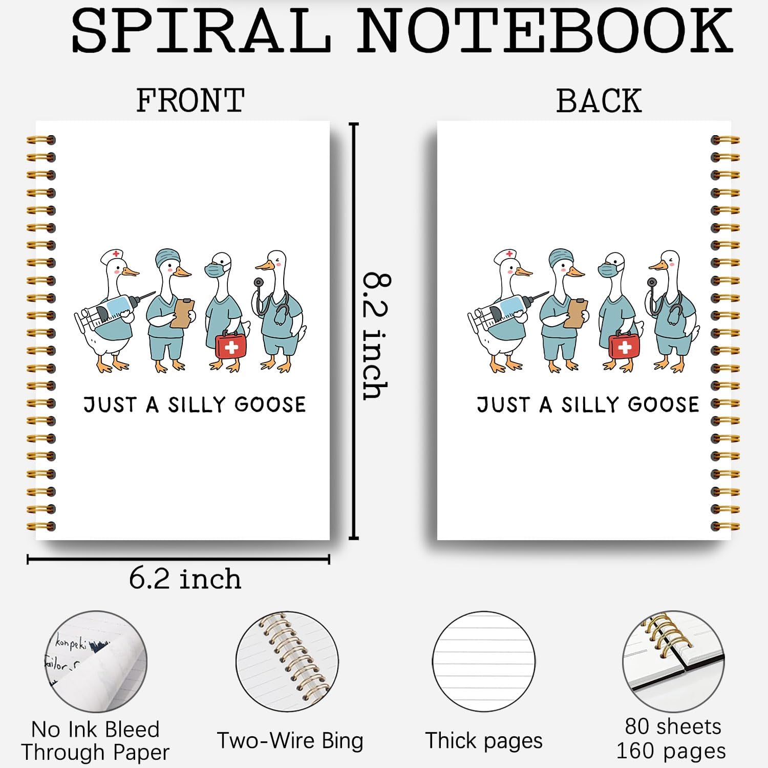 Guymn Goose Doctor Nurse Notebook Journal, Medical Journal, Nurse Doctor Appreciation Gifts, Goose Lover Gifts, Medical Staff Hardcover Spiral Notebook 5.5x8.3 Inch