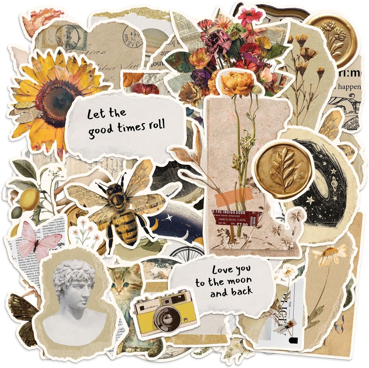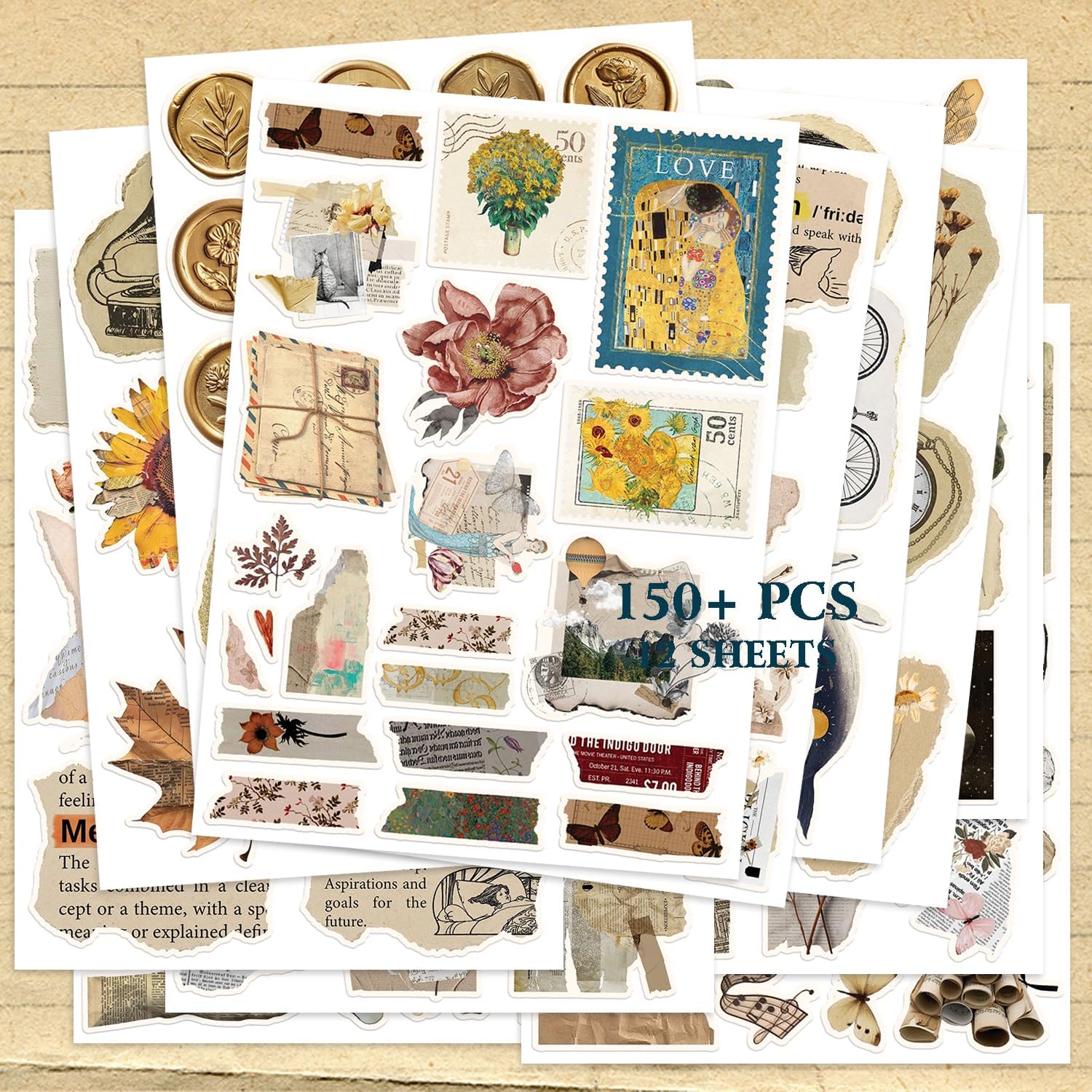 150PCS Vintage Sticker for Scrapbooking, Aesthetic Junk Journal Supplies Kit, Ephemera for Journaling, Planners, Diary, Waterproof DIY Craft Supplies