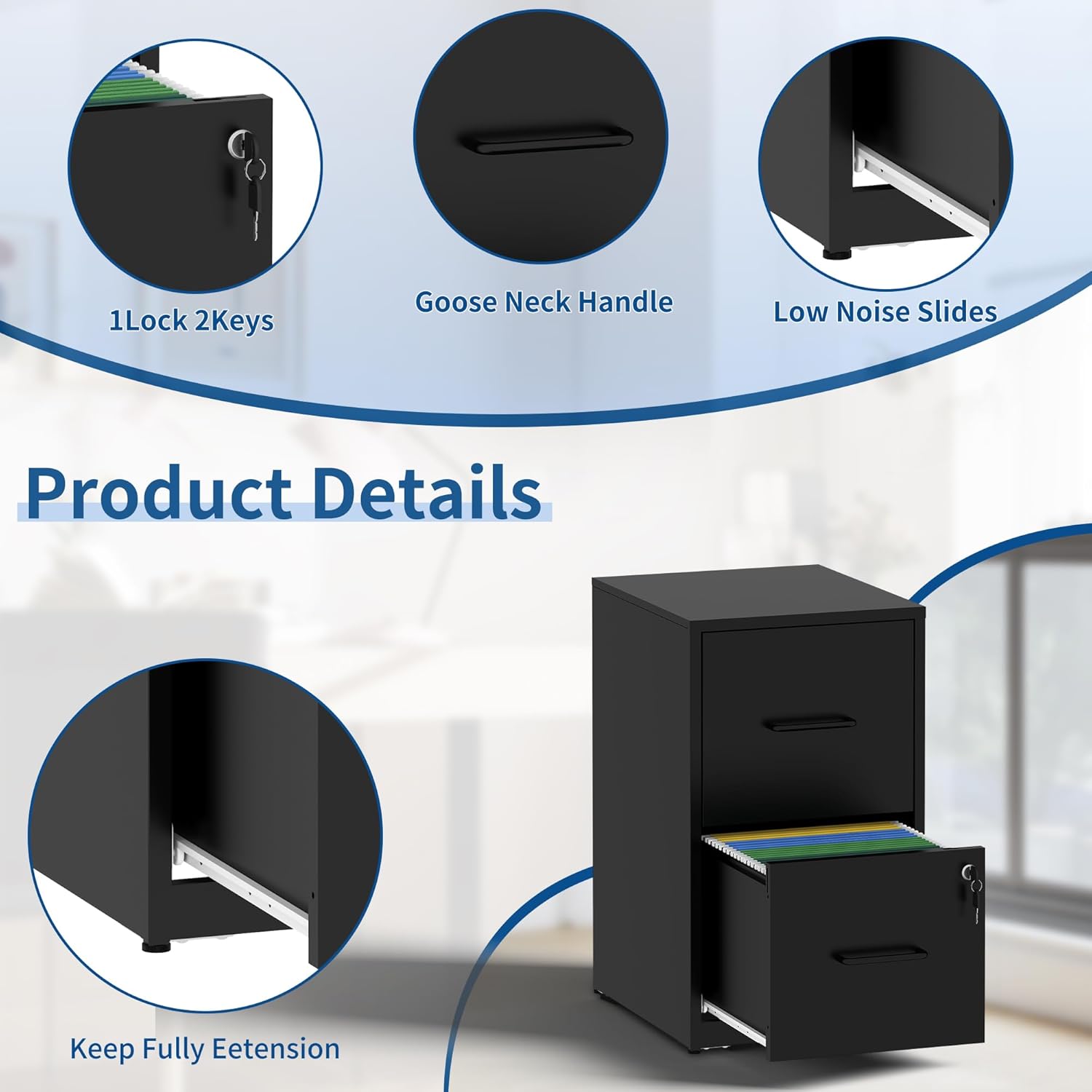 2-Drawer Locking Vertical File Cabinet, Metal Storage Cabinet for Office/Home – Secure Vertical Filing for Letter/Legal/A4/F4 Documents, Easy to Assemble Steel Cabinet (Black, 2 Drawer-25 H)